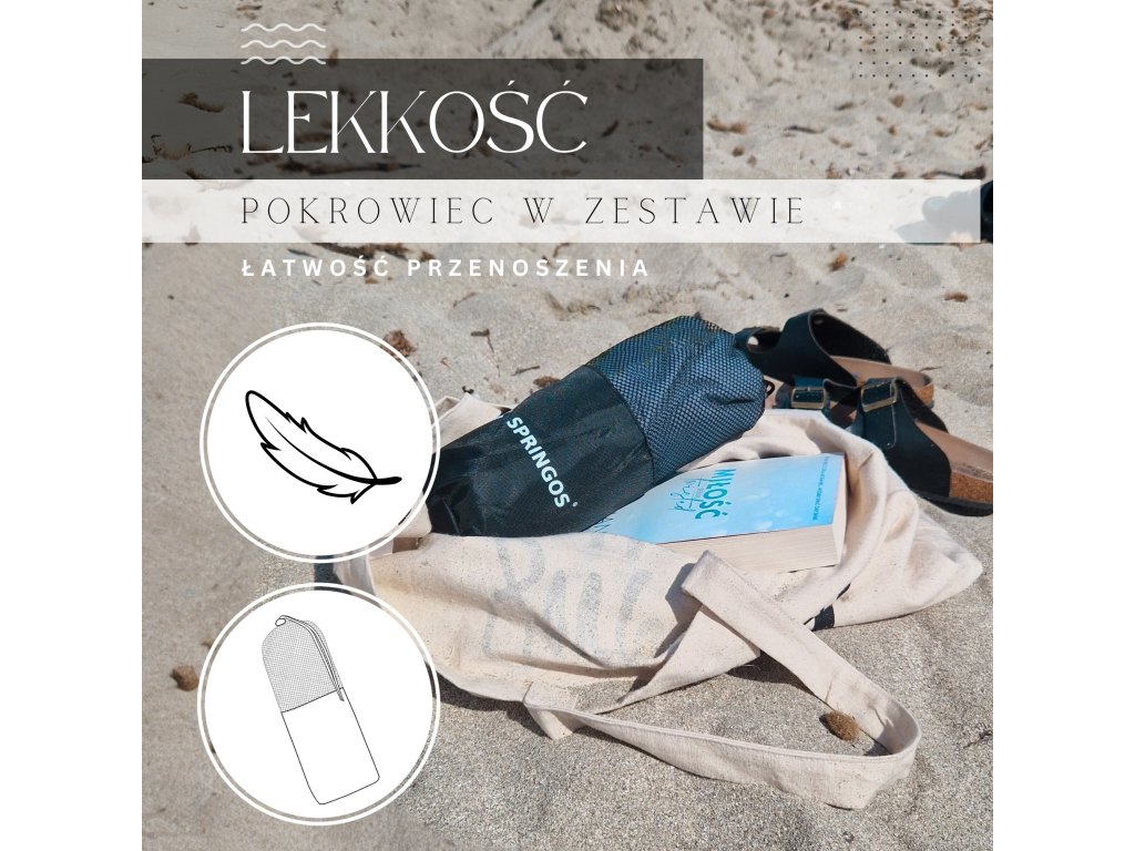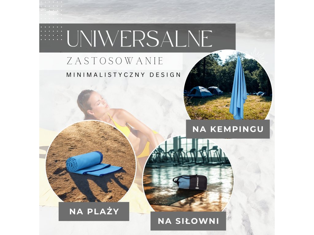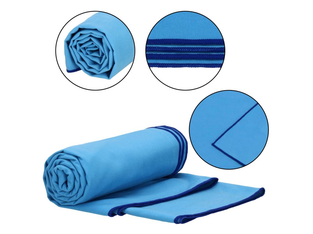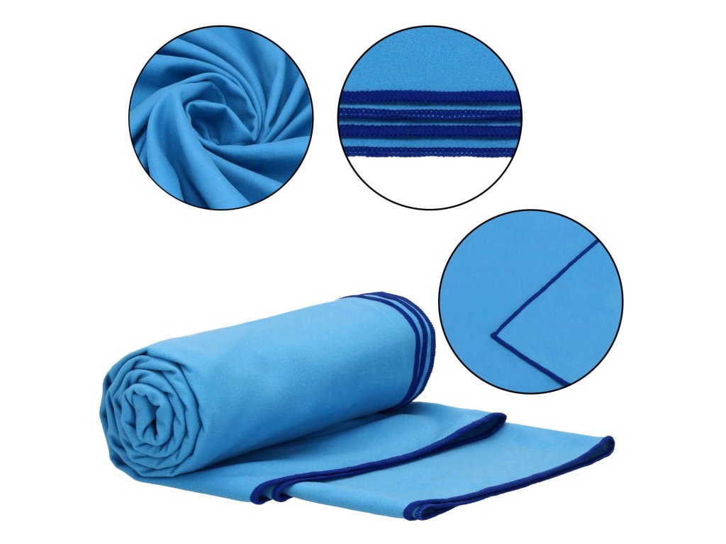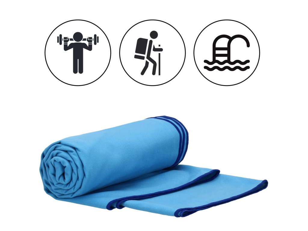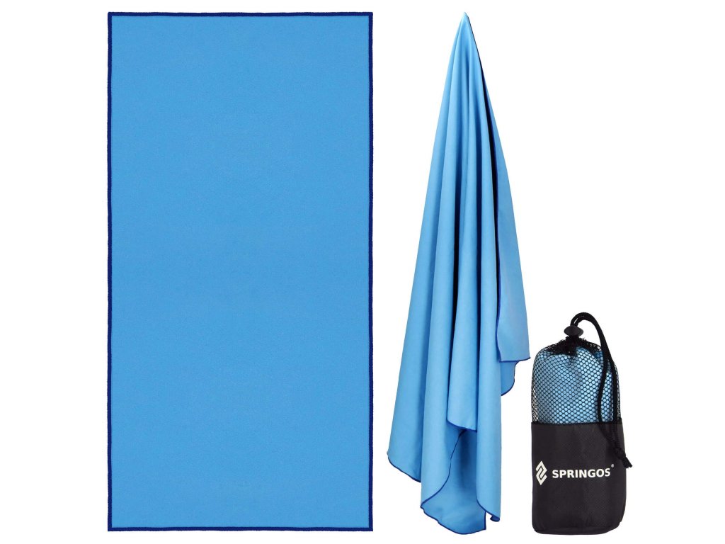 - Znamka: SpringosVelikost: 90 x 180 cmMaterial: mikrovlaknaBarva: svetlo modratemno modra overlock obrobaDimenzija v etuiju: 26 x 13 x 8 cmEtui z zatezno vrvicoPrišita elastika z logotipom Springos za vezanje brisače