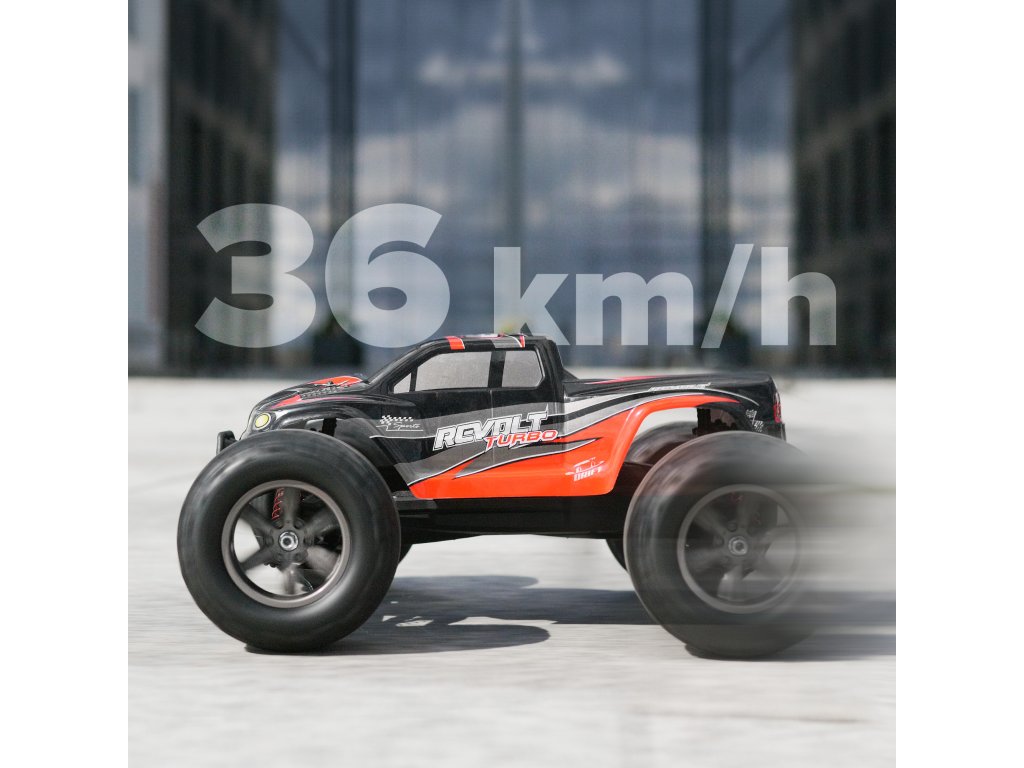 Avto Revolt je idealen pripomoček za ljubitelje hitre vožnje, tudi tiste z daljinsko vodenimi avtomobili. Električni, krtačni motor omogoča pospešek do 36 km/h! Začutite to moč!