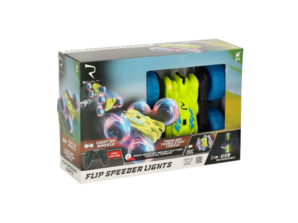 Iščete igračo, ki bo vašemu otroku zagotovila ure nepozabne zabave Revolt Flip Speeder Lights je idealna izbira! To edinstveno vozilo na daljinsko upravljanje združuje sodoben dizajn, napredno tehnologijo in neomejeno zabavo.