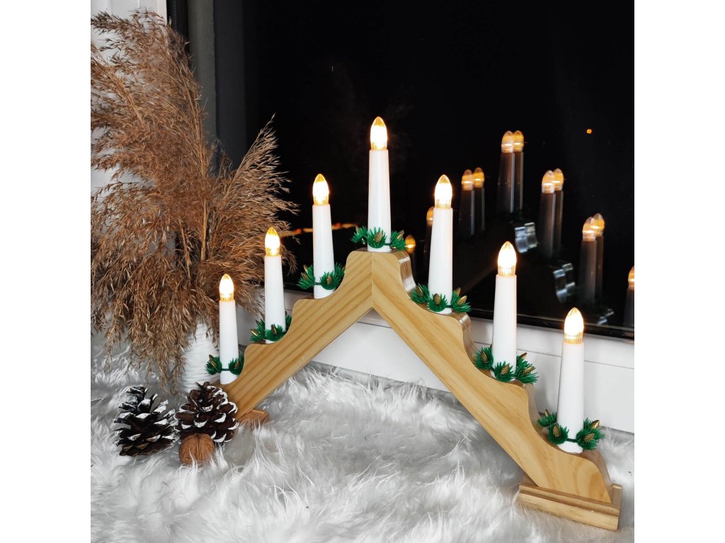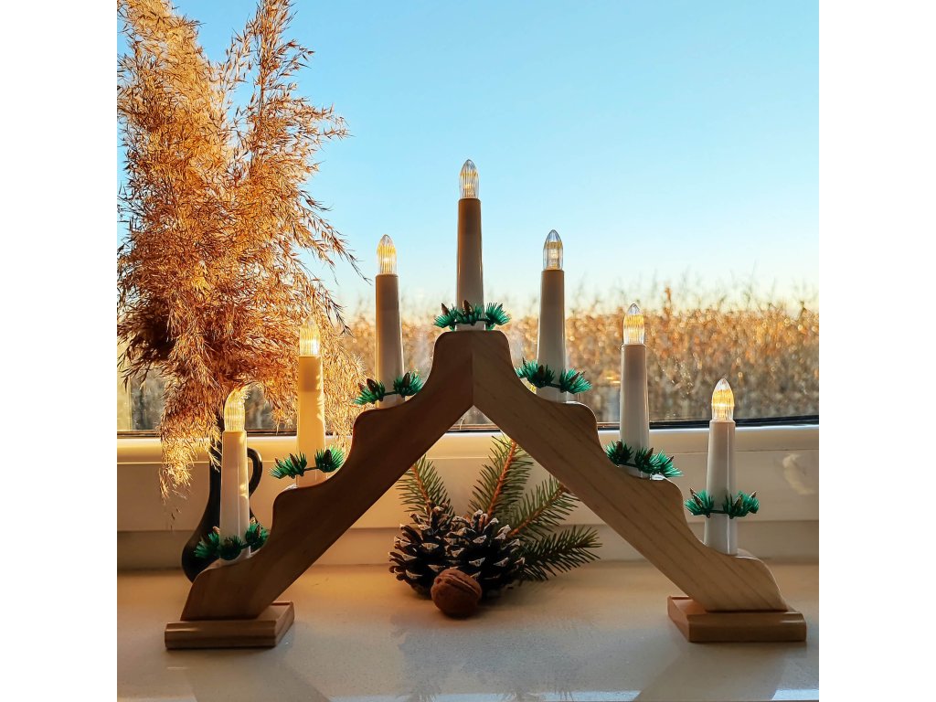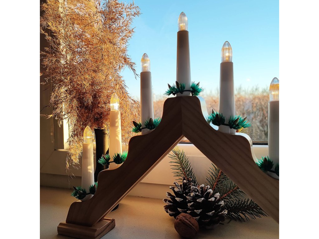 - Zeleni venčki okoli umetnih sveč s storži (5 storžev)