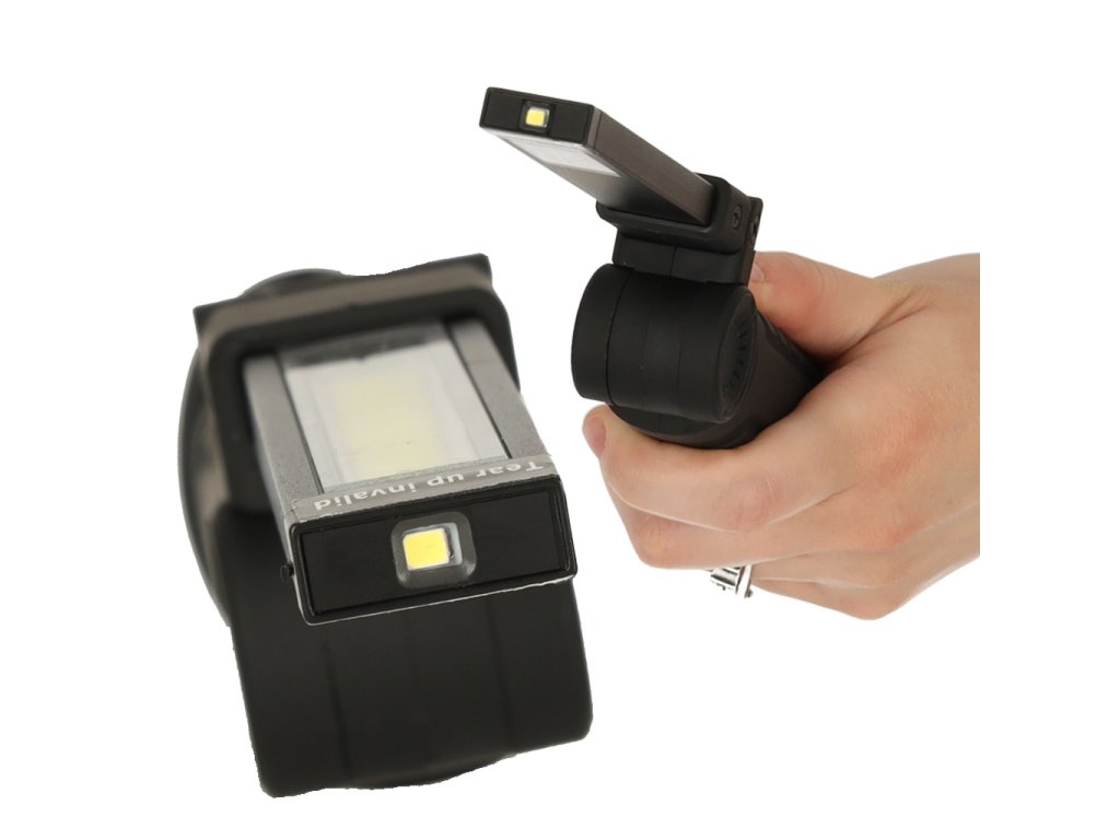 Dolga LED plošča je nastavljiva v različnih kotih, kar zagotavlja, da lahko osvetlitev priročno prilagodite potrebam situacije. Gibljiva konstrukcija omogoča, da svetilko zložite, tako da zavzame manj prostora v žepu ali v predalu.