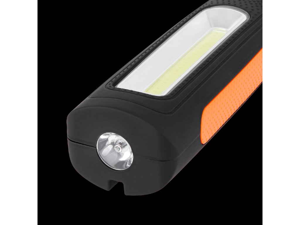 Delovna svetilka uporablja eno sprednjo COB diodo z močjo svetlobnega toka 220 lumnov in dodatno LED diodo na vrhu z močjo 60 lumnov. COB dioda zagotavlja obseg osvetlitve do 20 metrov, kar je idealno za osvetlitev bližnjega delovnega območja, medtem ko LED dioda na vrhu osvetljuje razdaljo do 50 metrov, kar je koristno pri bolj podrobnem delu. Skupna moč svetilke je 3 W (COB) in 1 W (LED).
