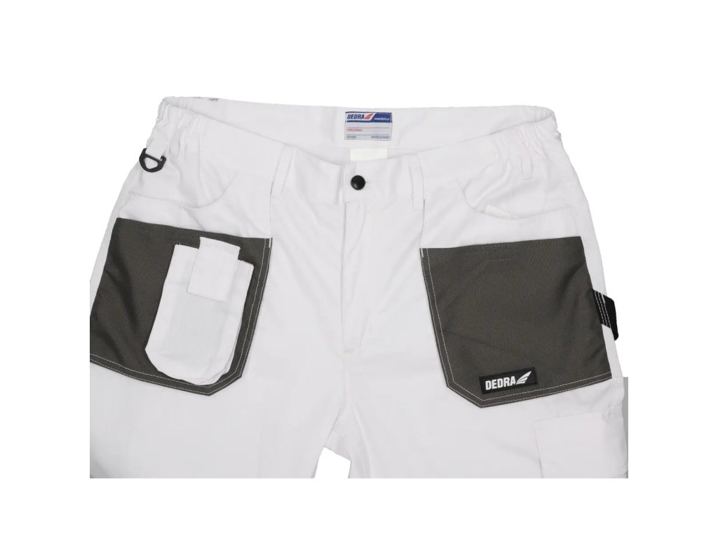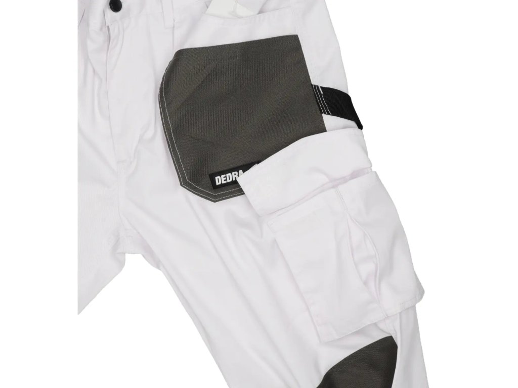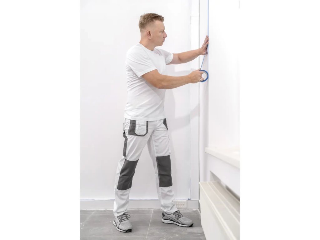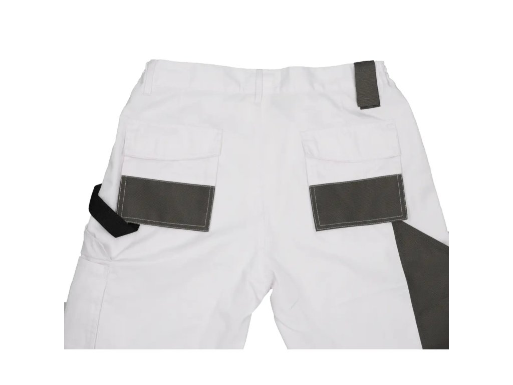 Varnostne hlače WHITE LINE so narejene iz mešanice poliestra in bombaža. Material s težo 190 g/m zagotavlja dobro kroženje zraka in svobodo gibanja. Dodatna ojačitev na področju kolen. Funkcionalni žepi, vključno z žepom za pametni telefon. Dvojni šivi za večjo vzdržljivost. Zaradi bele barve so hlače še posebej primerne za slikarje in štukaterje. Neprimerno za toplo vreme.