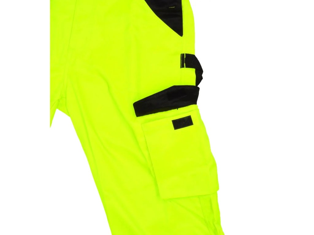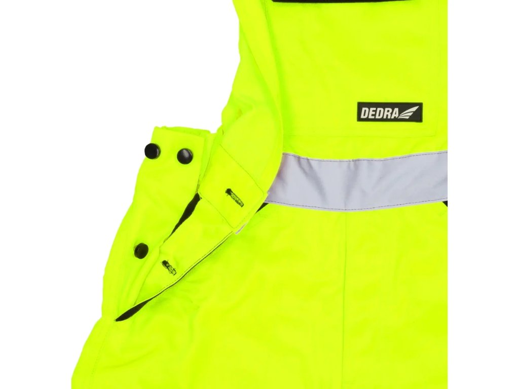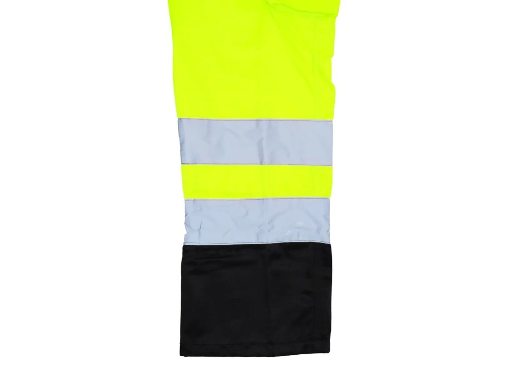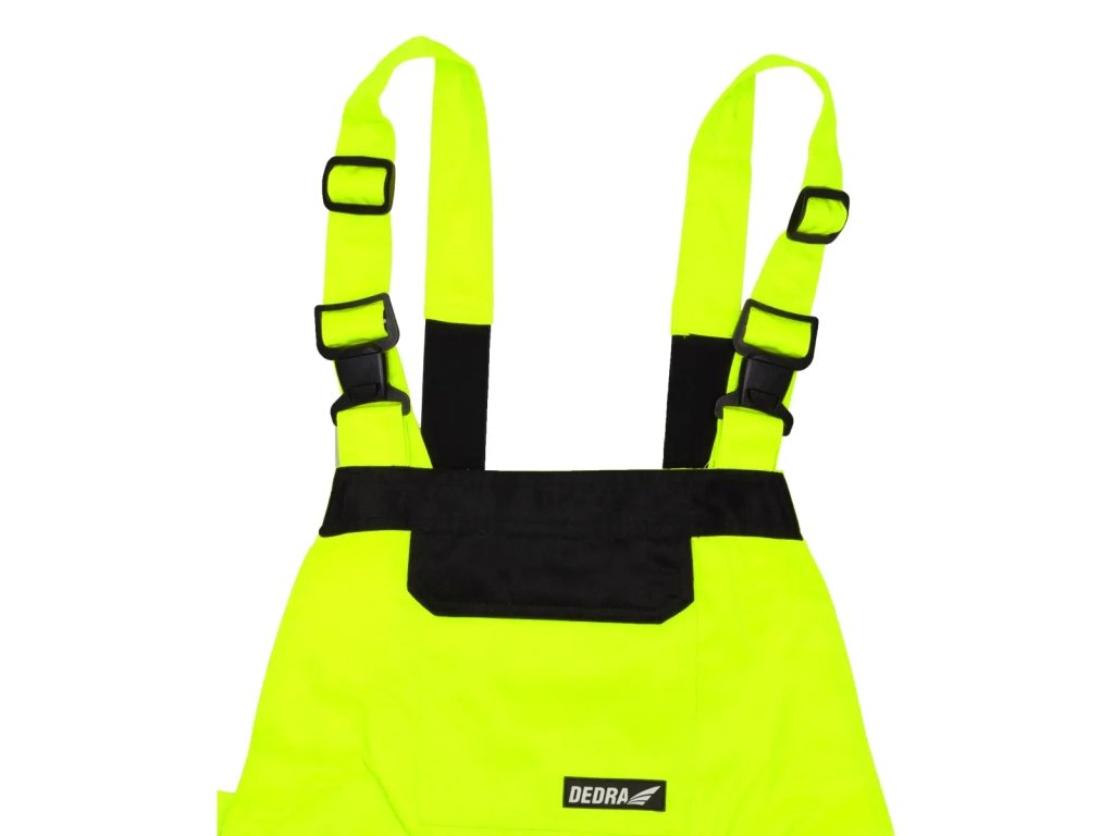 Vrtne hlače so izdelane iz mešanice poliestra in bombaža s težo 250 g/m2. Hlače imajo elastičen pas in nastavljive naramnice z všitimi elastikami. Hlače imajo 8 praktičnih in funkcionalnih žepov ter zanko za pas za kladivo. Hlače imajo odsevne trakove na hlačnicah in dodatno na pasu, kar zagotavlja varnost v zahtevnih pogojih ali po dežju. Na voljo velikosti od S do 2XL. Rumena barva.