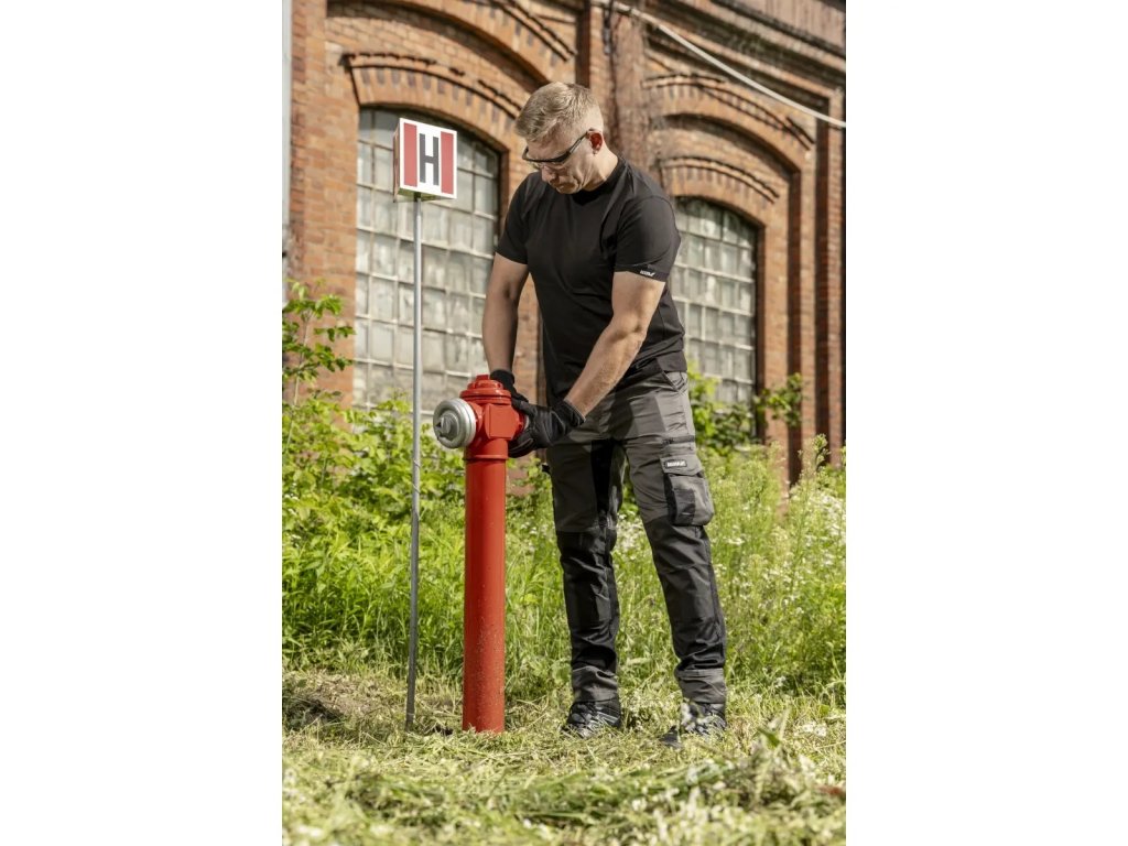 Delovne hlače so opremljene s posebnimi, na ježka zapiranimi žepi za kolenske blazine, kar omogoča enostavno in stabilno pritrditev, ter zagotavlja udobje in učinkovito zaščito kolen. Pomembno je, da je ta ključni del ojačan z vzdržljivo, na obrabo odporna tkanino OXFORD 600D. Ta tkanina je izjemno odporna na obrabo, kar pomeni, da hlače ohranijo svoje lastnosti tudi pri intenzivni uporabi v težkih razmerah.