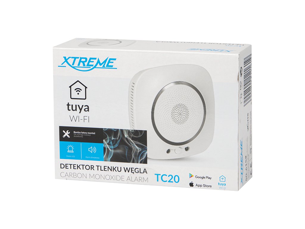 Detektor senzorja za ogljikov monoksid XTREME z možnostjo konfiguracije naprave preko vgrajenega Wi-Fi ter namenske aplikacije TUYA SMART LIFE. V primeru zaznavanja ogljikovega monoksida senzor oddaja zvočna in optična opozorila s pomočjo rdeče diode.