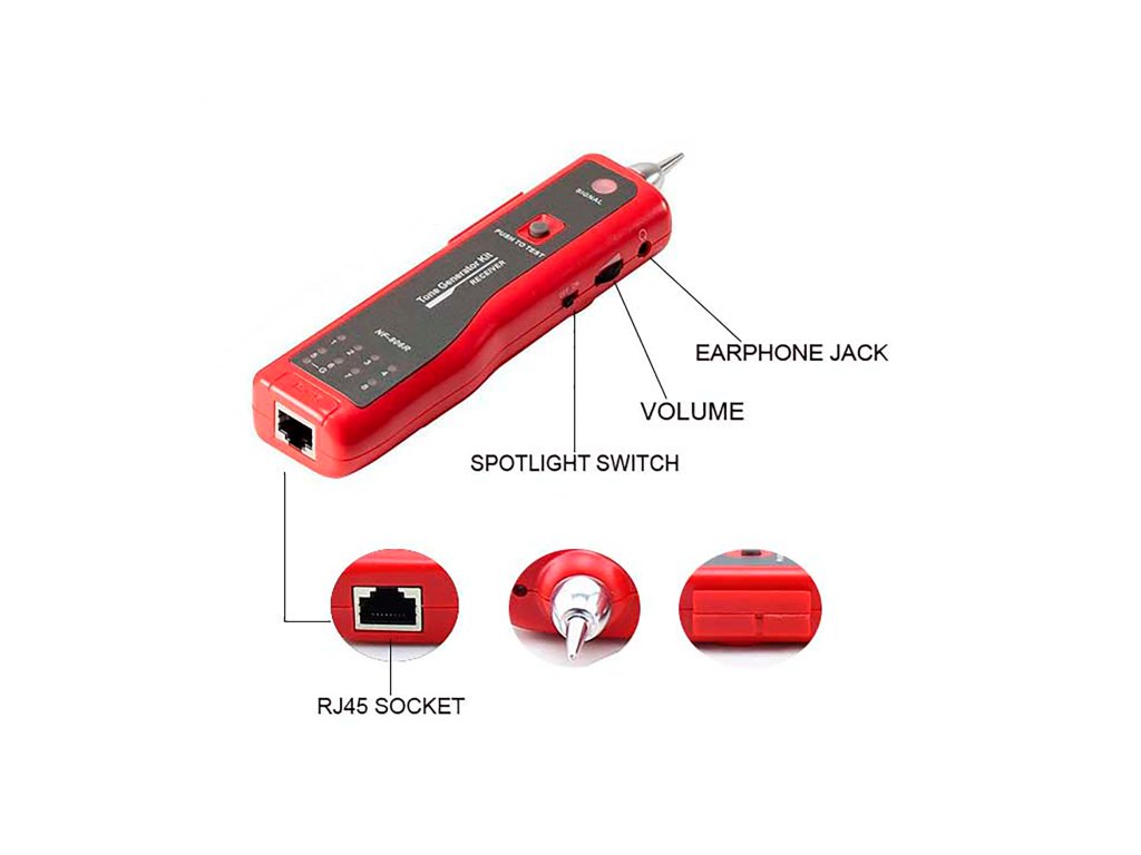 oddajnika-generatorja in sprejemnika-detektorja, ki omogočata priročno iskanje in testiranje pravilnosti izvedbe elementov računalniškega omrežja dolžine do 300 m.