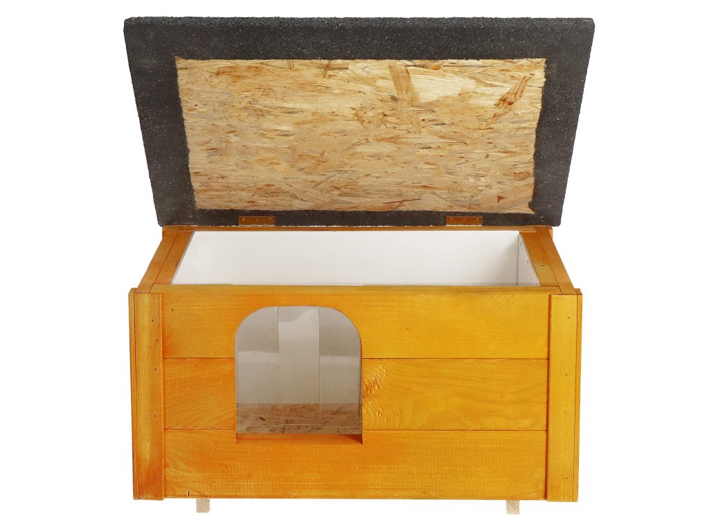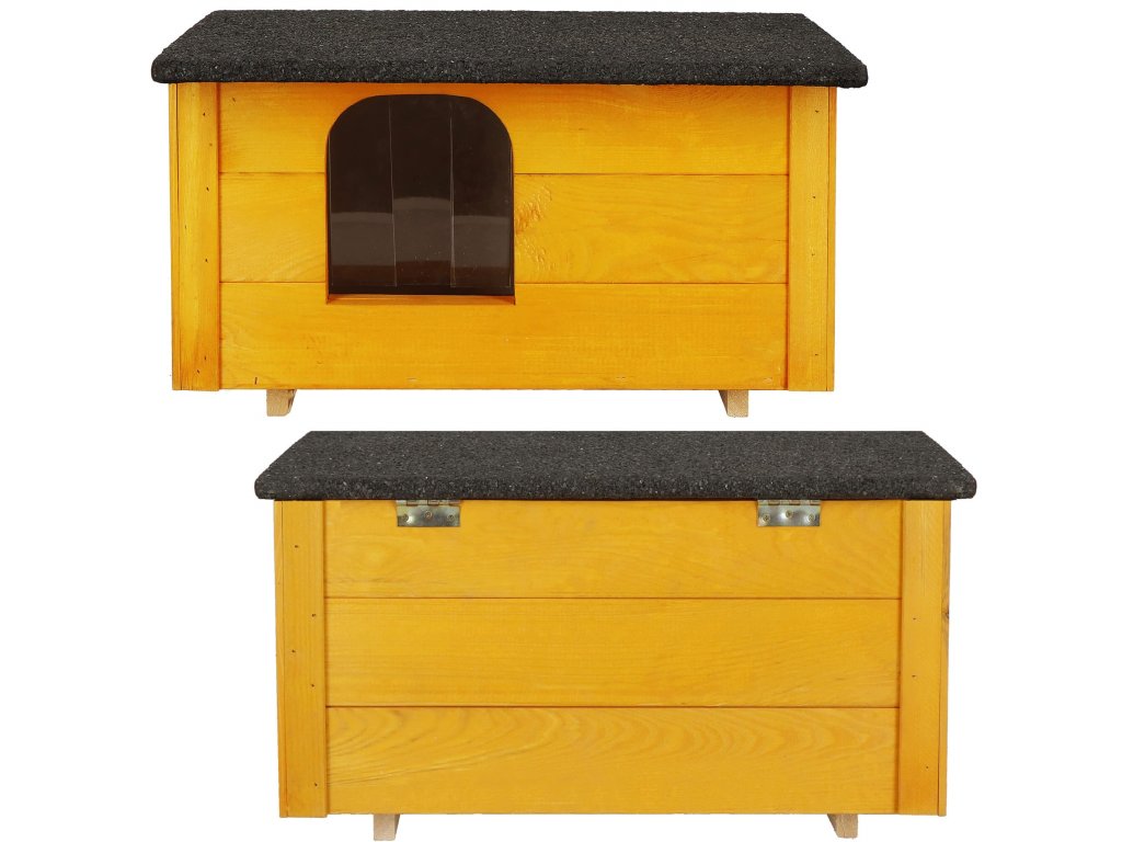 - Hiška stoji na 2 lesenih nogah, kar omogoča, da dlje časa ohranja ustrezno temperaturo.