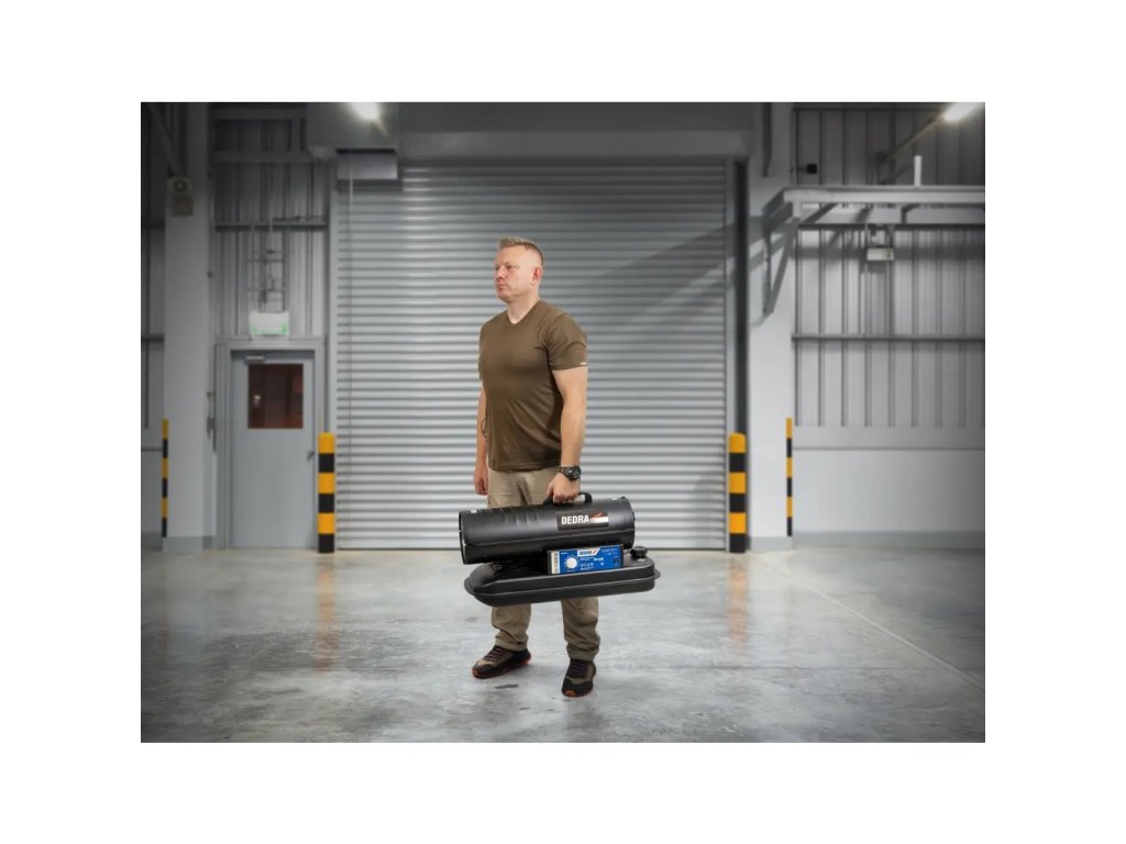 Protipovratni grelnik DED9950A je namenjen uporabi v zaprtih prostorih. Uporablja se za ogrevanje nebivalnih prostorov, kot so delavnice, skladišča, proizvodne hale, rastlinjaki ali pri popravilih in gradbenih delih. Grelnik deluje na dizelsko gorivo ali lahki kurilni olje. Aparat se sme uporabljati samo v prostorih z učinkovitim prezračevanjem. Kovinska ovojnica se ne segreva niti med dolgotrajnim delovanjem. Varno delovanje zagotavlja termična zaščita. Grelnik ima upravljalni gumb za nastavitev in prilagoditev temperature. Ročaj za enostaven transport in shranjevanje.Ta izdelek se ne sme uporabljati kot primarni vir ogrevanja.