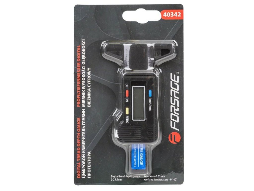 Digitalni merilnik globine profila, nujen pri ocenjevanju stopnje obrabe pnevmatik.