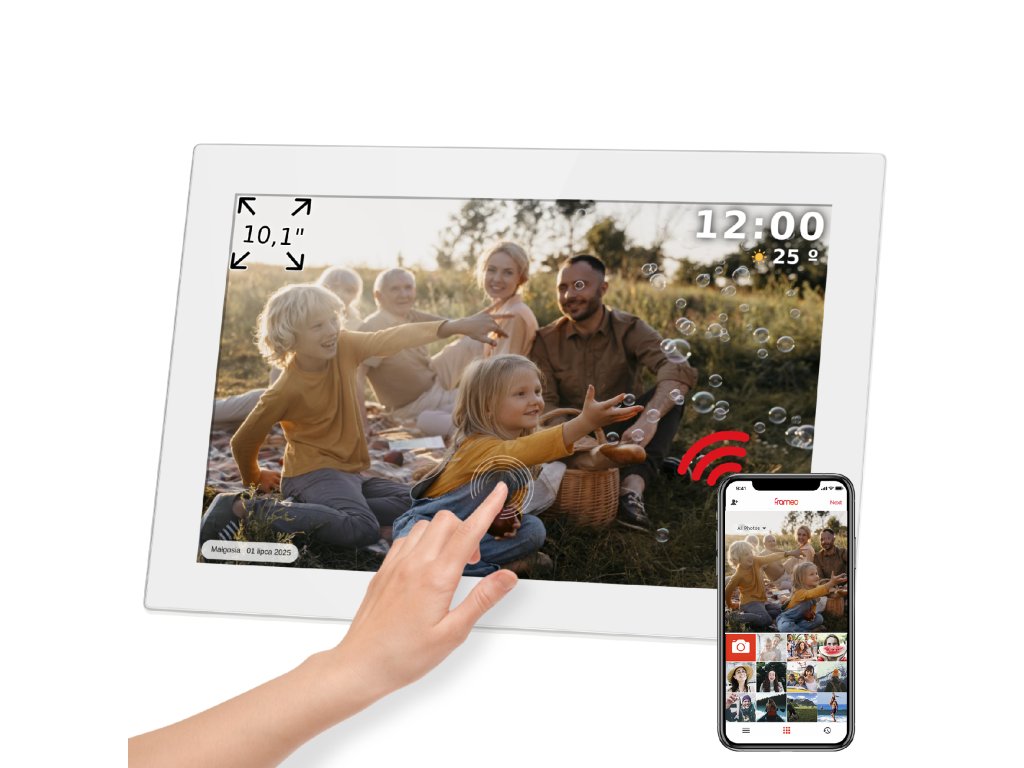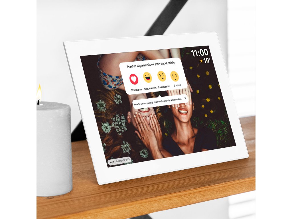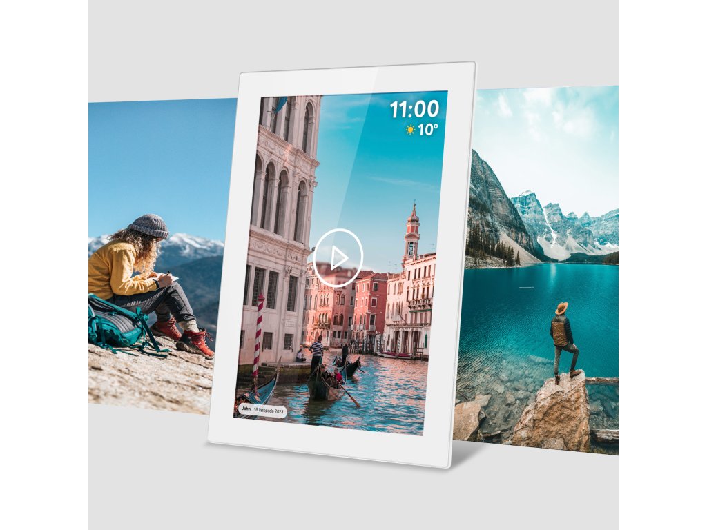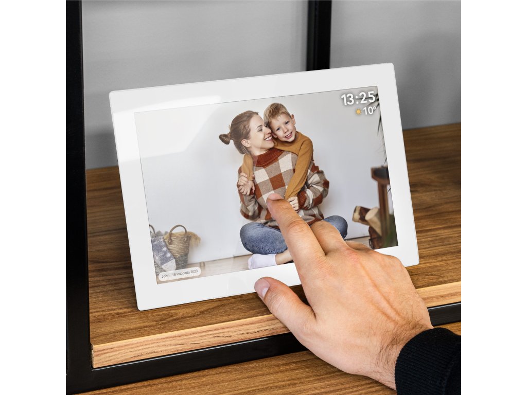 Digitalni okvir za fotografije vam omogoča, da v svoj dom prinesete čar spominov. Oglejte si in ponovno doživite vaše najljubše trenutke na 10-palčnem zaslonu z ločljivostjo 1280x800 pikslov. Zahvaljujoč uporabi IPS matrice bodo vaše fotografije in videi popolnoma vidni iz kateregakoli kota prostora!