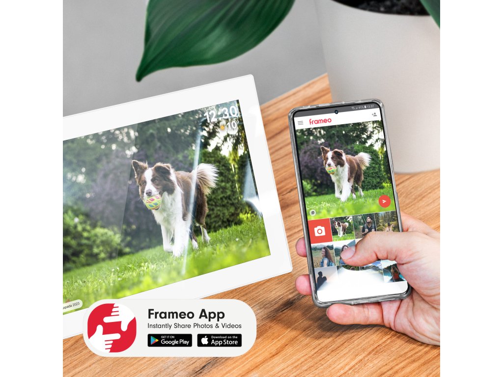 Okvir Kruger&Matz, zahvaljujoč namenski aplikaciji FRAMEO, zagotavlja novo kakovost deljenja spominov. Sedaj lahko enostavno in hitro pošiljate svoje najljubše fotografije in videoposnetke neposredno s pametnega telefona v okvir. Vsak posnetek dogodkov predvajajte in uživajte v čarobnosti spominov.