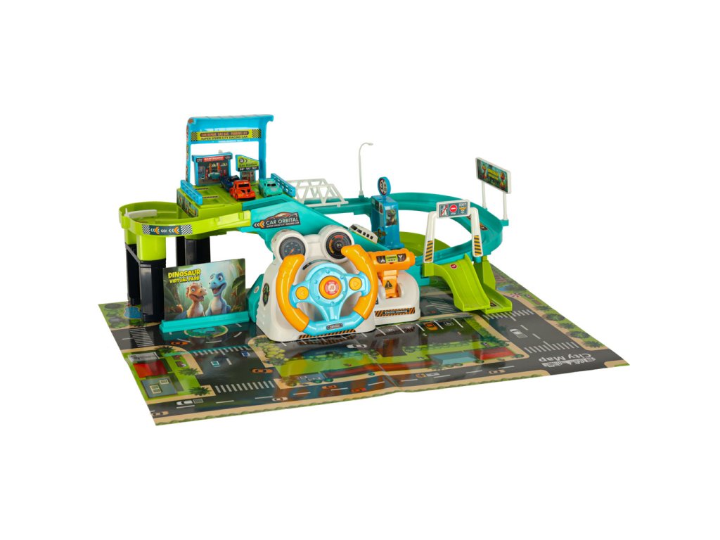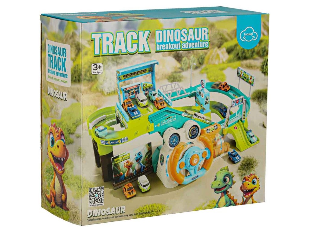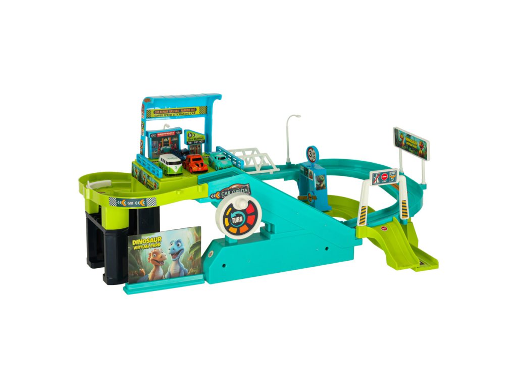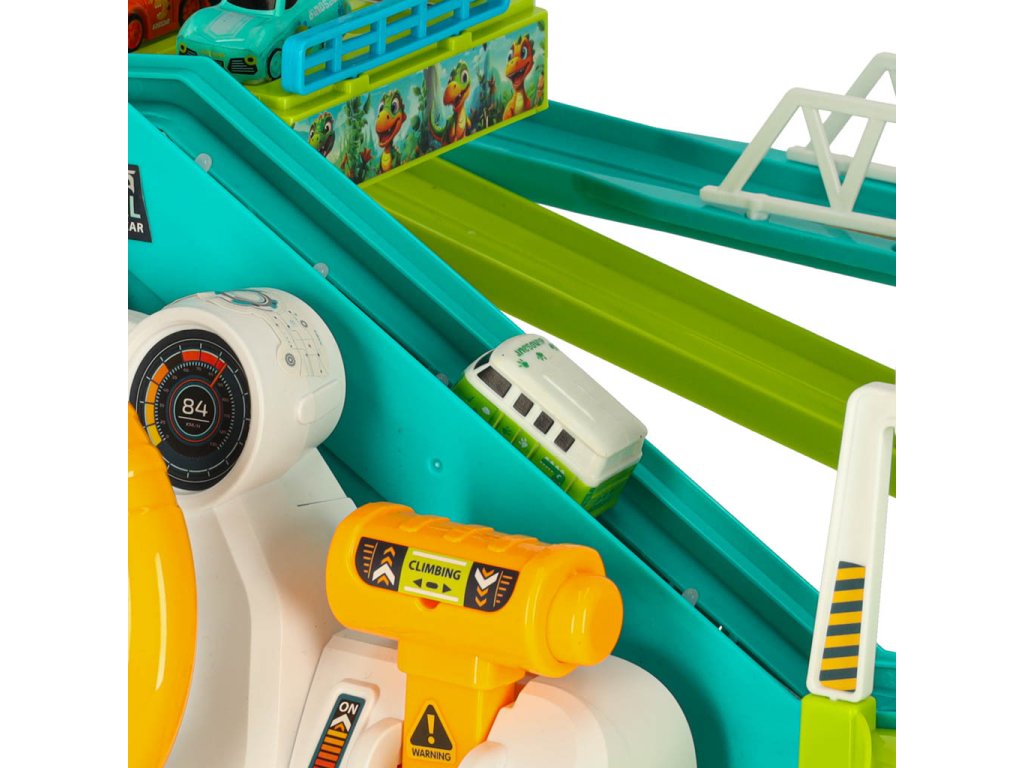 Dinozavrska parkirna garaža s avtomobilsko stezo, 4 avtomobili