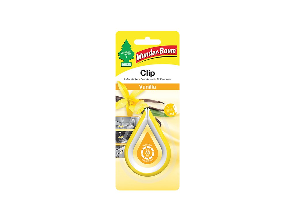 WUNDER-BAUM CLIP - inovativna oblika osvežilca zraka za avtomobil v obliki originalne in elegantne sponke. Dolgotrajno sprošča dišavo zahvaljujoč napredni polimerni tehnologiji.