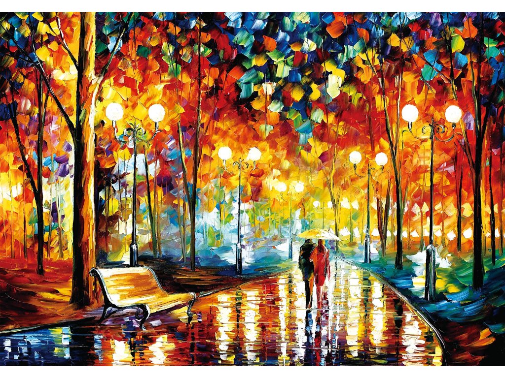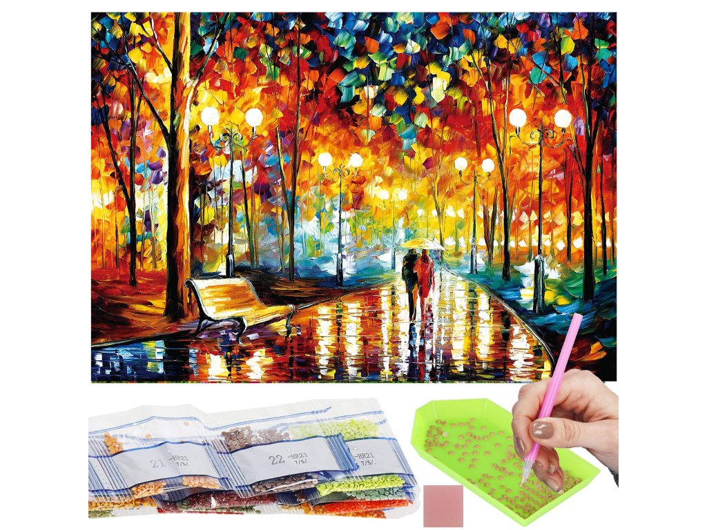 1x močno platno s potiskano sliko, prikazujočo alejo v parku in indeksom, ki dodeljuje črke barvam ter barve številkam, določajočim barvo diamanta