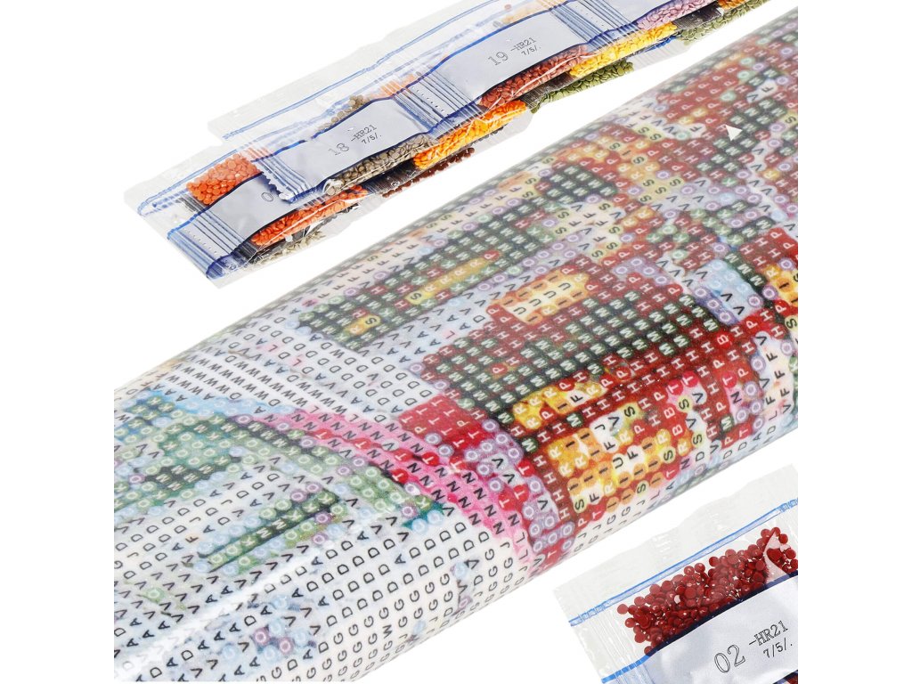 1x trdno platno s tiskano podobo, ki prikazuje zmaja in indeksom, ki črke prirašča barvam in barve številkam, ki določajo barvo diamanta