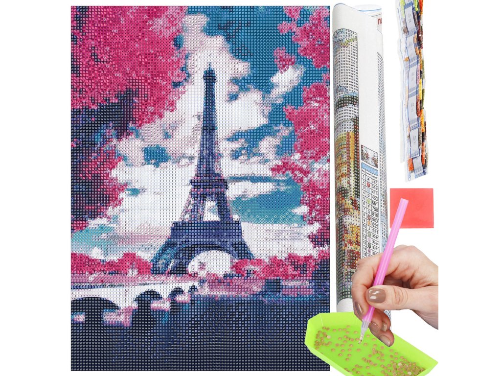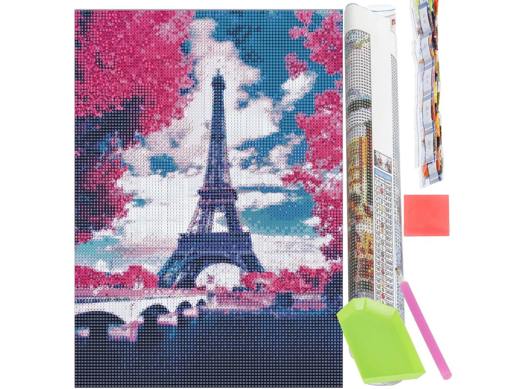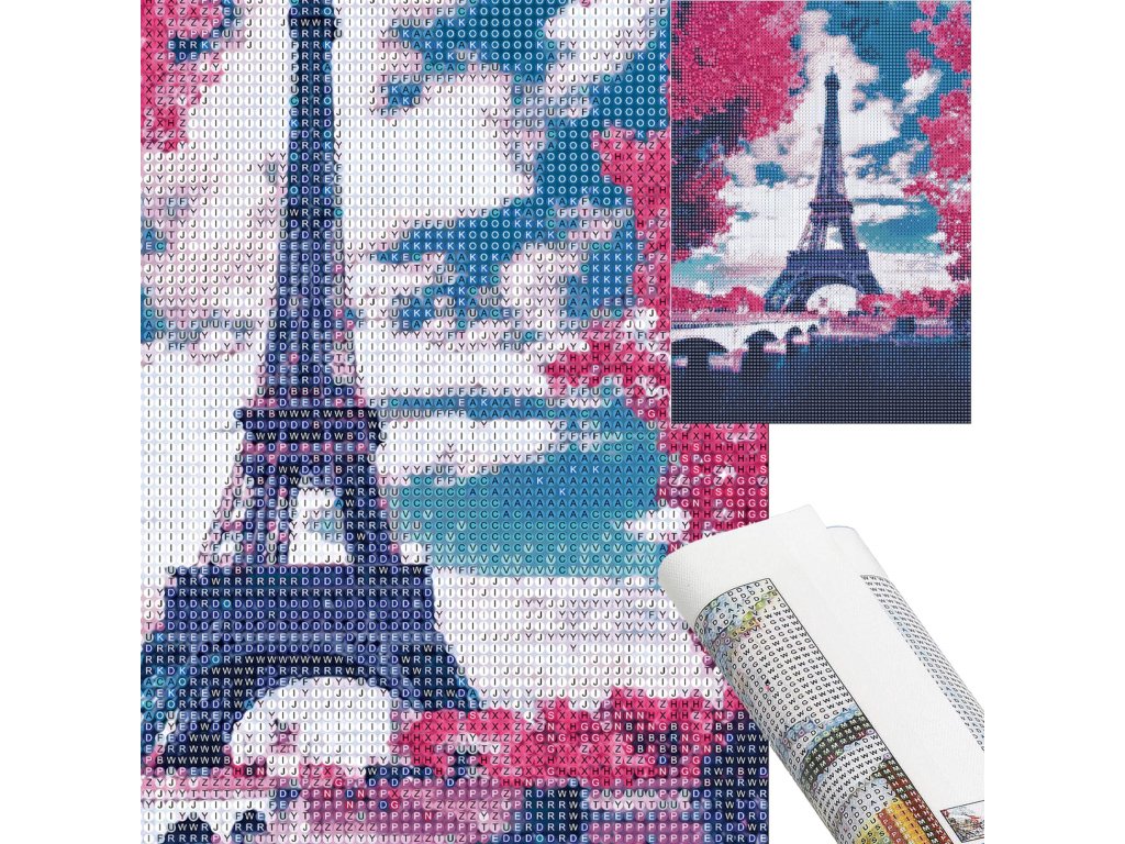 - 1x močno platno z natisnjeno sliko Eifflovih stolpov in indeksom, ki dodeljuje črke barvam in barve številkam, ki določajo barvo diamanta