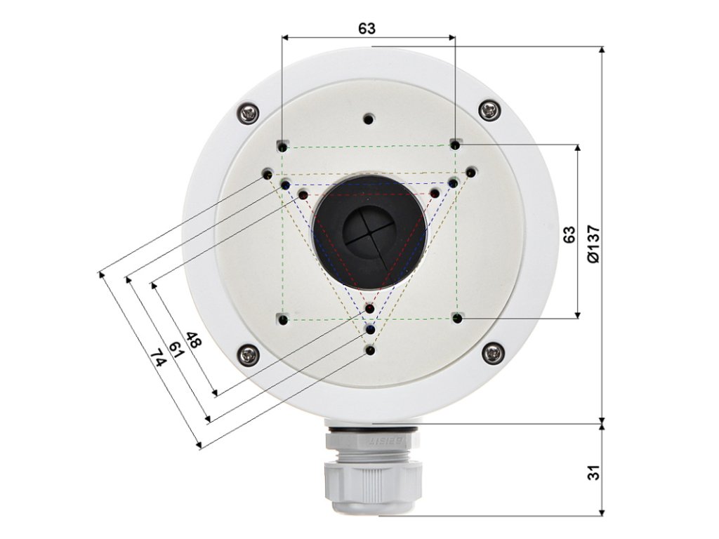 Adapter je izdelan iz aluminija, prašno lakiranega. Dodatna prednost uporabe te vrste nosilca je prisotnost kablovnega tesnila, ki omogoča hiter dostop do žic ob ohranjanju tesnosti celotne konstrukcije.