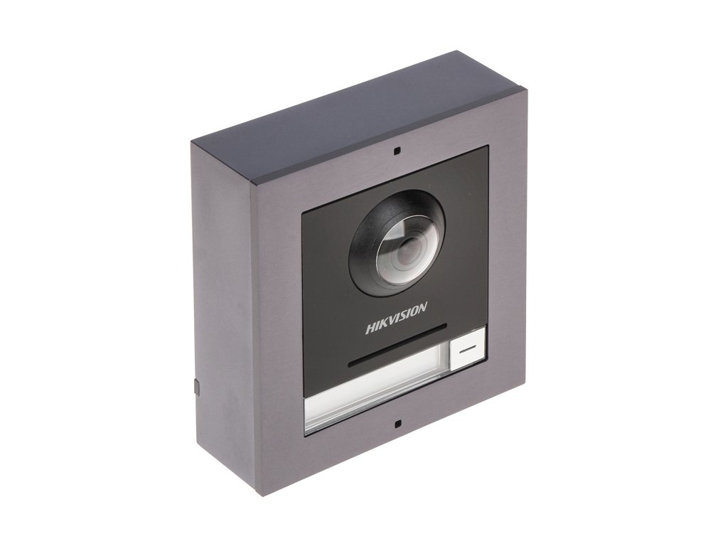 Postaja DS-KD8003-IME1 je glavna enota modularnega sistema videovratnika blagovne znamke Hikvision. Naprava vsebuje "ribje oko" kamero s ločljivostjo 2Mpx (FullHD), dvosmerni sistem glasovne komunikacije in gumb za klic.