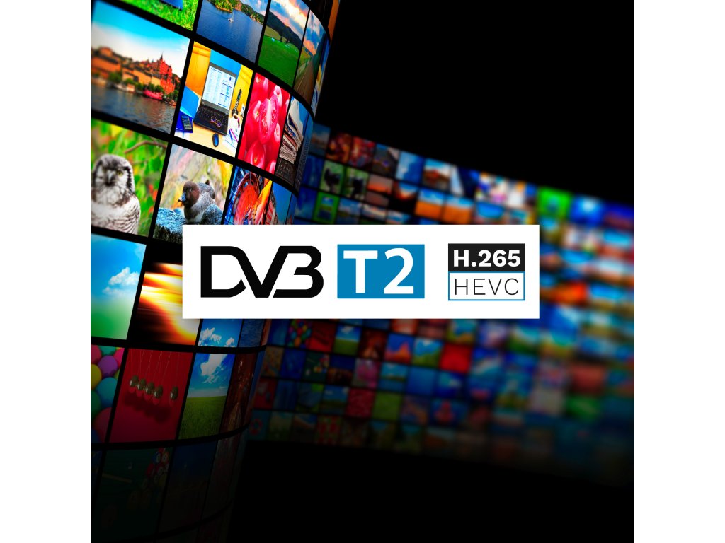 - Popolnoma združljiv z DVB-T2 / DVB-T H.265 HEVC