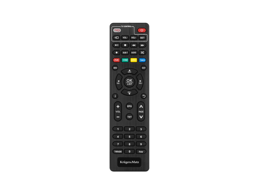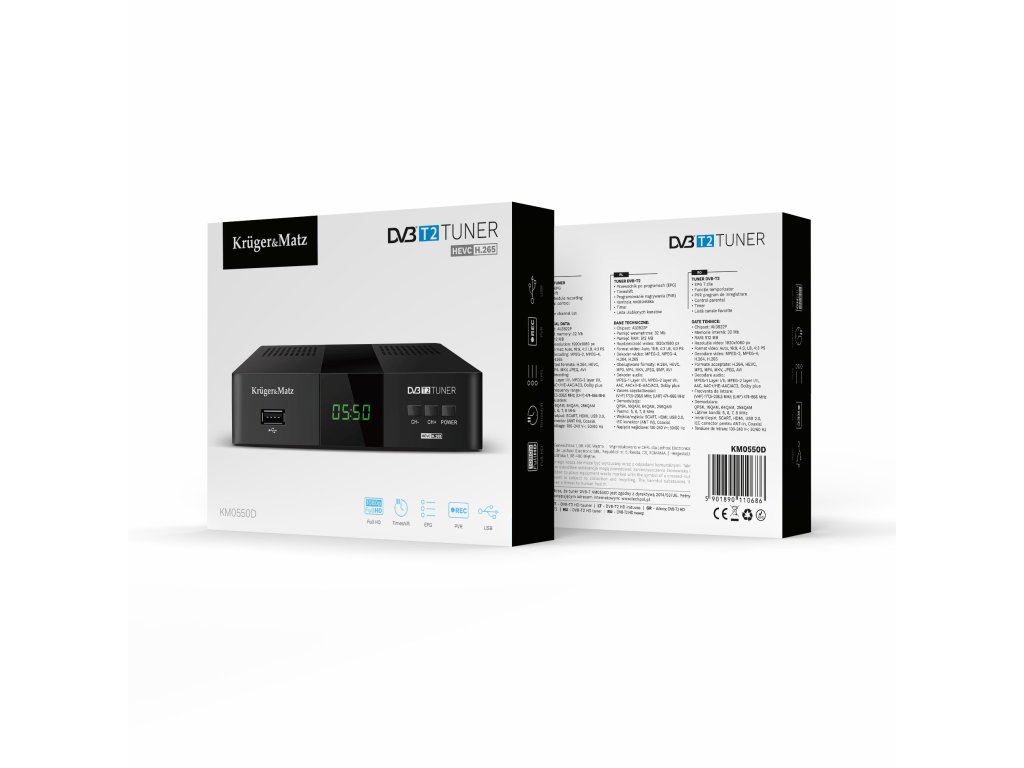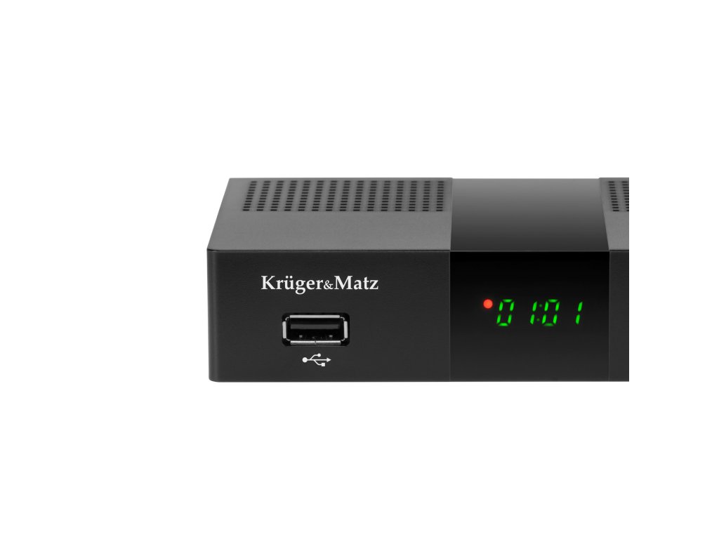Elegantna, črna škatla v kombinaciji z majhno velikostjo naredi sprejemnik DVBT Kruger&Matz skorajda neviden na vaši RTV mizi. Udobje pri upravljanju naprave zagotavlja praktičen daljinski upravljalnik s programabilnimi gumbi. Pravilno programiranje omogoča hitro in enostavno upravljanje funkcij televizorja in sprejemnika z enim samim upravljalnikom.