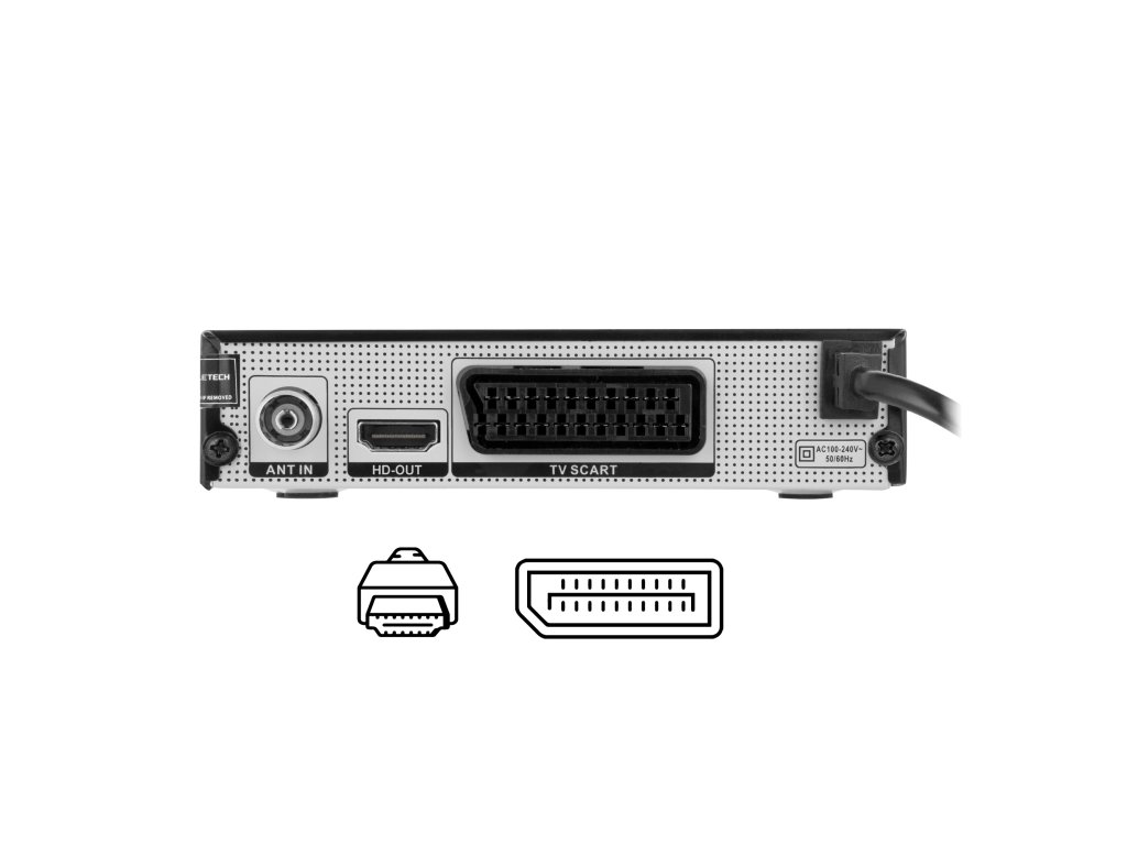 Tuner Cabletech URZ0338A je opremljen s priključkom HDMI, zahvaljujoč kateremu ga lahko povežete z vsemi novejšimi modeli televizorjev in gledate programe v kakovosti FullHD. Lastniki starejših vrst televizorjev lahko tudi brez težav povežejo tuner s pomočjo SCART priključka, torej euro priključka.