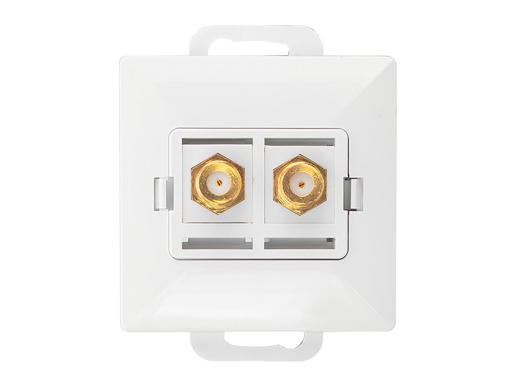 Modularna serija s simetričnim sistemom okvirnih plošč (za 1-, 2-, 3-, 4-, 5-module) omogoča montažo izdelka v vodoravni in navpični legi. Sodobni mehanizem za hitro povezovanje (žice so povezane z neposrednim potiskom v telo) omogoča varno in zanesljivo namestitev ter odstranitev žic. Vtičnice so opremljene s tradicionalnimi vijačnimi povezavami. Notranja zasnova priključkov zagotavlja zanesljivo povezavo žic od 0,75 mm? do 2,5 mm?. Močna in robustna mreža nosilne plošče ter visokokakovostni samoretralirajoči elementi omogočajo stabilno in zanesljivo namestitev v omarici. Posebni vzmetni elementi olajšajo pritrjevanje okvirja v telo.Dvojna televizijska vtičnica za anteno, tipa F. Omogoča povezavo dveh kablov s priključkom tipa F. Uporabljati jo je treba v notranjosti (IP20).