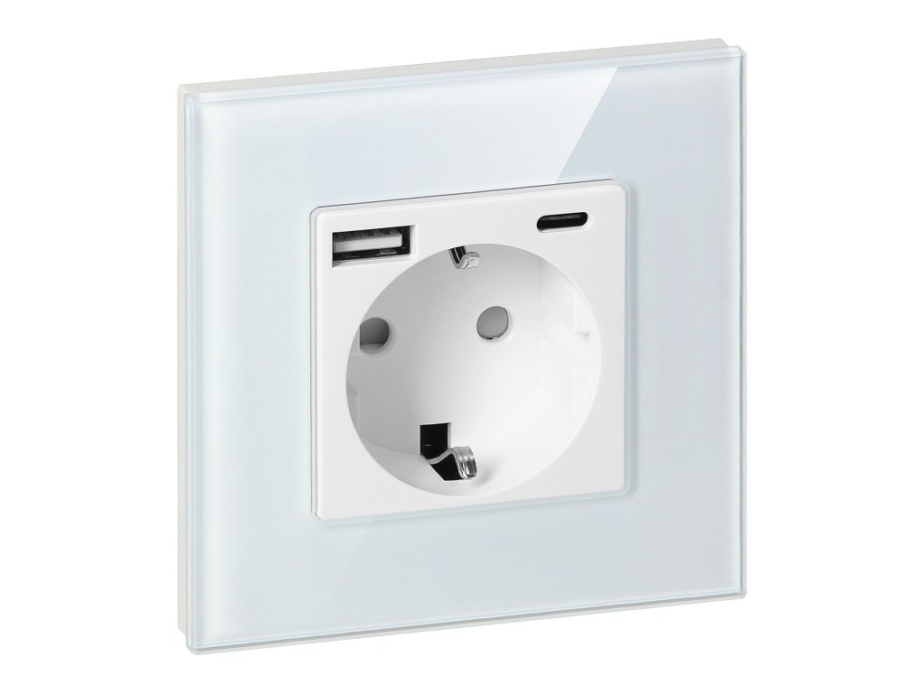 Sodobna enojna vtičnica je rešitev, ki združuje funkcionalnost tradicionalne električne vtičnice z možnostjo povezovanja mobilnih naprav zahvaljujoč vgrajenemu USB polnilniku.Vtičnica 2P+E v Schuko standardu je zasnovana za montažo v standardno inštalacijsko škatlo s premerom 60 mm. Deluje z napajalno napetostjo 230V, 50Hz in maksimalno obremenitvijo 3680W.