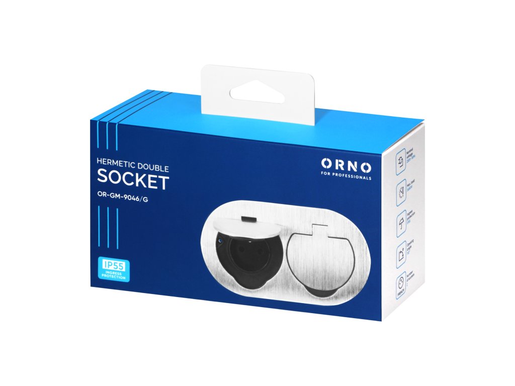 Dvojna zatesnjena ovalna vtičnica IP55 srebrna