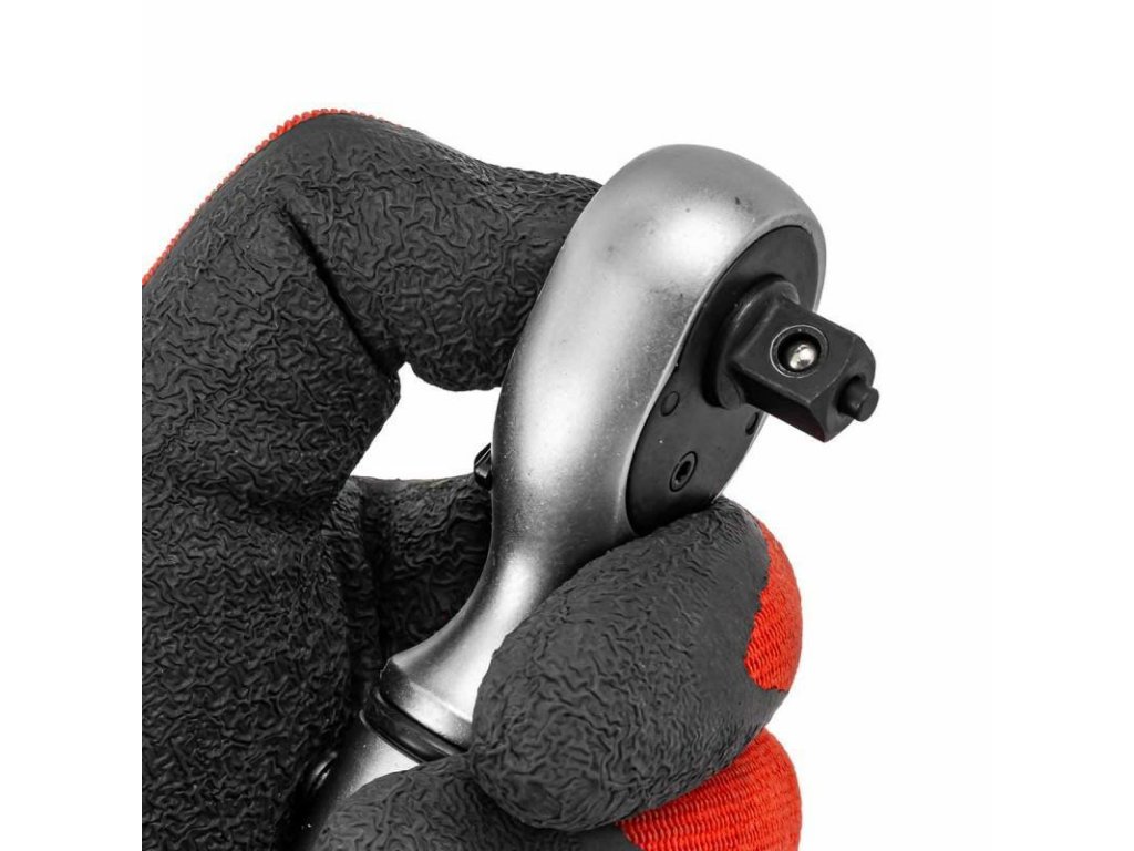 - Udobje pri delu. Protislizna ročica preprečuje, da bi ključ zdrsnil iz rok. Oprema omogoča enostavno spremembo vrednosti navora in sile zategovanja.