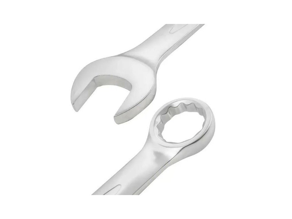 Ploski očkovni ključ, zamaknjen 15°, izdelan iz ogljikovega jekla, površina ključa kromirana, satenska.