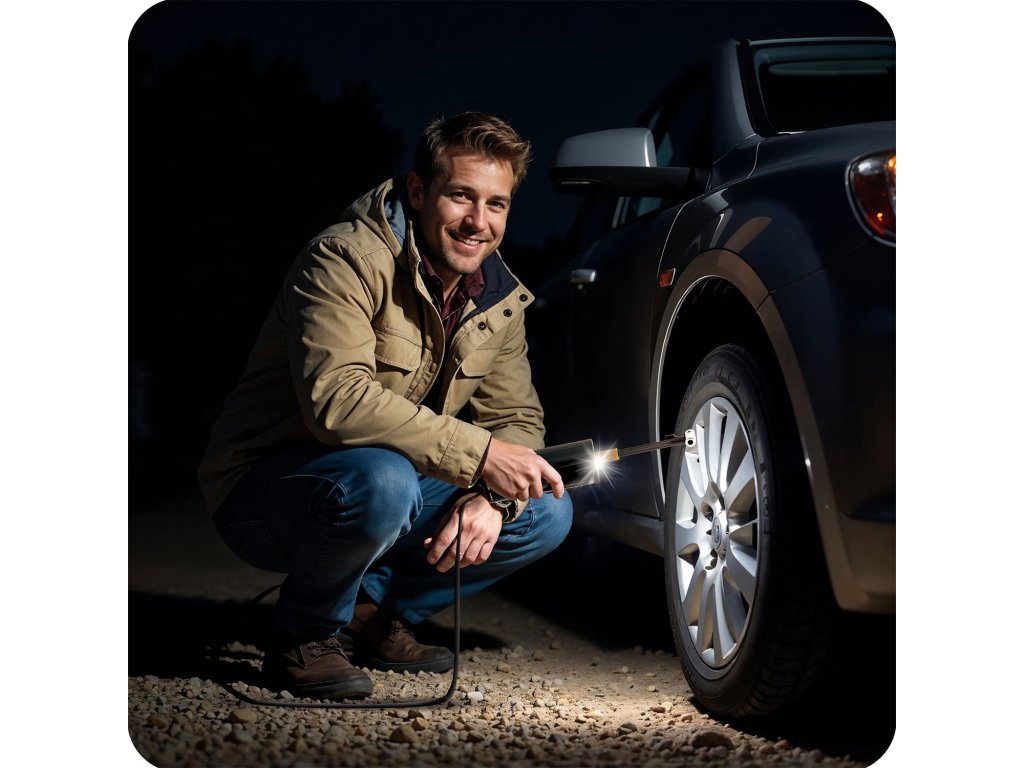 - Nujno napihovanje pnevmatik na cesti – hitra pomoč v primeru padca tlaka in za kontrolo ravni tlaka.