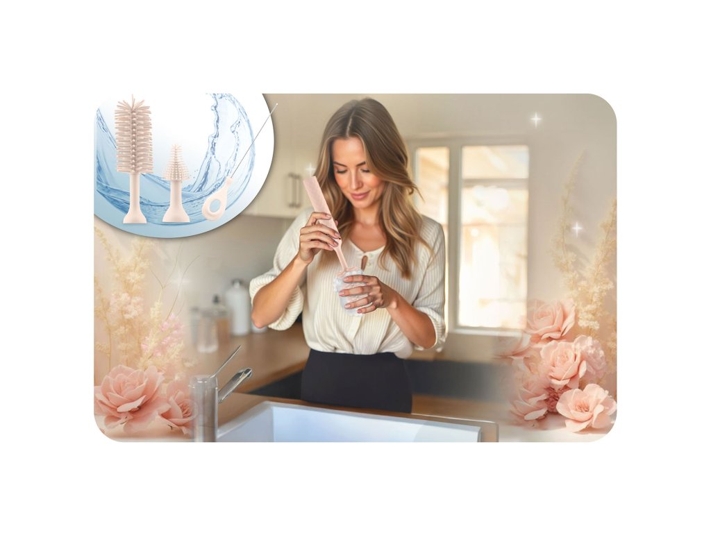 Temeljito čiščenje otroških steklenic je ključnega pomena za zdravje in varnost vašega otroka. Lahko se zgodi, da se posušeni ostanki popolnoma ne operejo pri ročnem pranju ali v pomivalnem stroju – od danes naprej ta problem izgine!