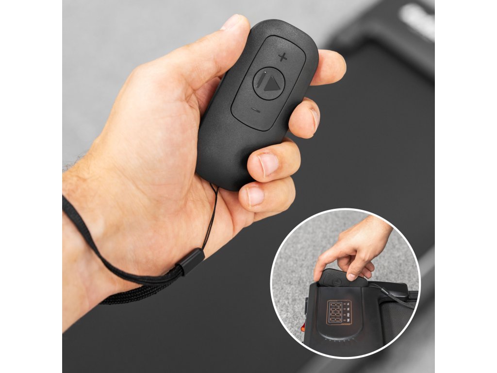 Zdaj se vam ni potrebno sklanjati ali prekiniti treninga – priložen daljinski upravljalnik s tekalno stezo RBA-1017 omogoča enostavno prilagajanje hitrosti med vadbo. Kompaktna, baterijsko napajana naprava zagotavlja udobje in popoln nadzor na dosegu roke.