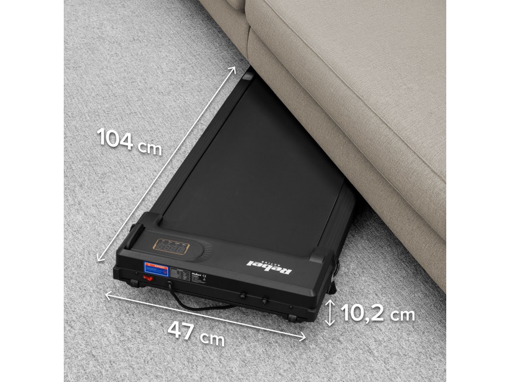 Vitka zasnova tekalne steze Rebel Active zavzame izjemno malo prostora. Po končanem treningu jo lahko enostavno potisnete pod posteljo, kavč ali omaro. To je naprava, ki ne dominira nad prostorom, ampak se popolnoma prilagaja življenjskemu stilu v manjšem stanovanju.