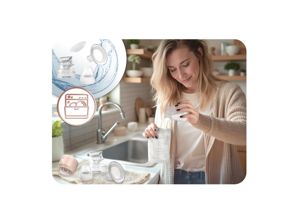 Kot delovna in doječa mama boste verjetno naslednjih nekaj mesecev črpali mleko vsak dan. Morda boste želeli črpalko vzeti tudi v službo. Kompaktnost naprave zagotavlja udobje njegove uporabe kjerkoli!