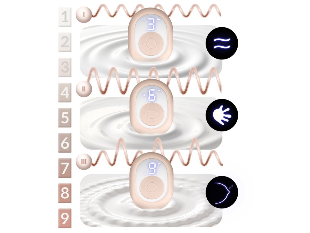 Črpalka ima funkcijo uravnavanja moči sesanja — prilagaja moč sesanja glede na potrebe mamice, kar omogoča neboleče in učinkovito črpanje mleka. Samo izbrati je treba ustrezno raven sesanja.