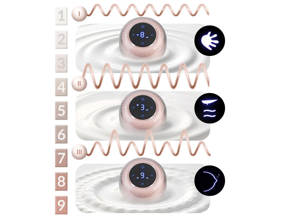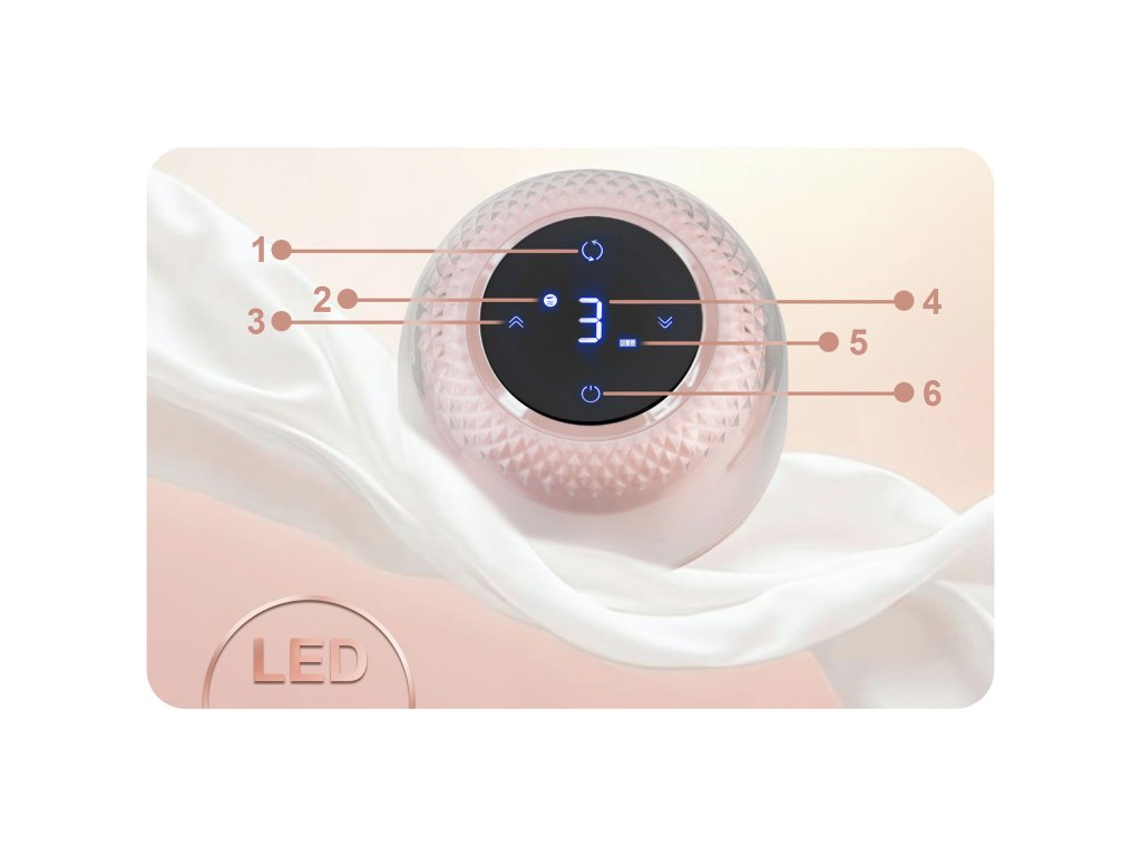 Črpalka Nukido je opremljena z berljivim LED zaslonom, ki omogoča uporabo naprave ponoči brez vklopa luči. Zahvaljujoč njemu je enostavno nastaviti način njenega delovanja in ustrezno raven stimulacije. Stalno lahko spremljate tudi raven napolnjenosti baterije.