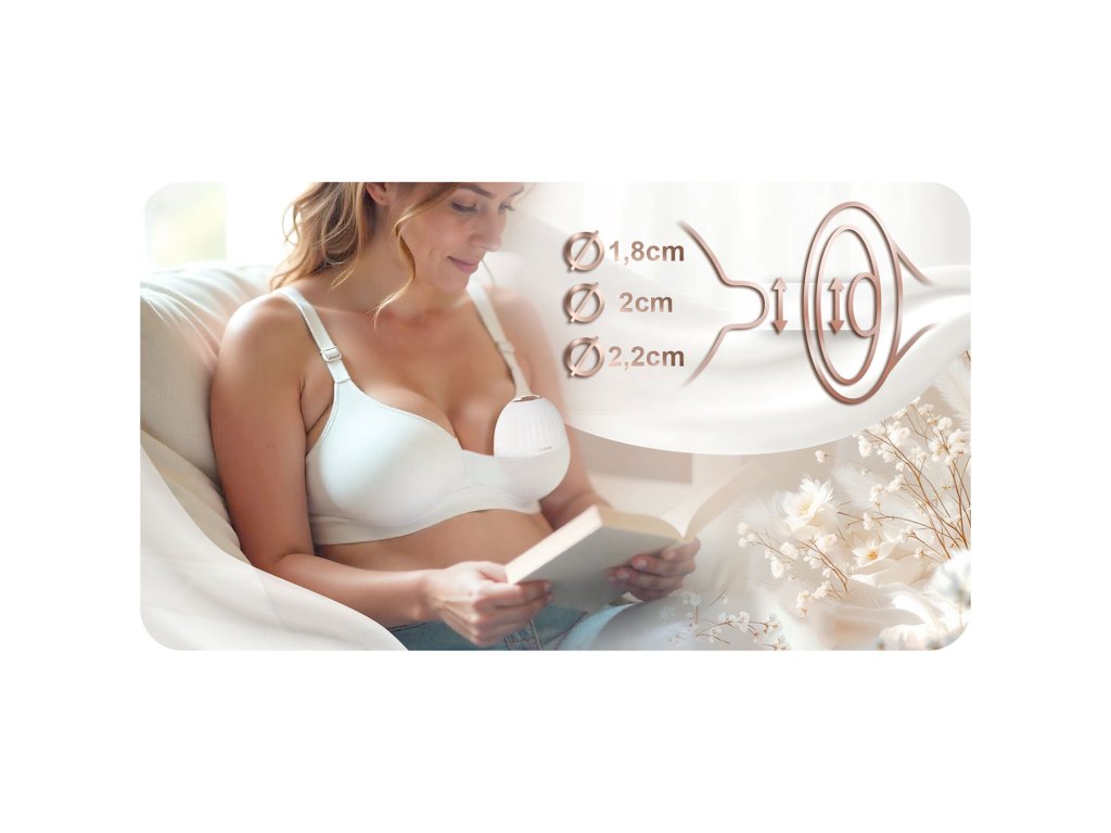 Kot delovna in doječa mama boste verjetno črpali mleko vsak dan v naslednjih nekaj mesecih. Morda boste želeli črpalko vzeti s seboj tudi v službo. Kompaktnost naprave omogoča udobje in diskretnost uporabe kjerkoli! Preprosto jo vstavite v modrček in se posvetite drugim stvarem.
