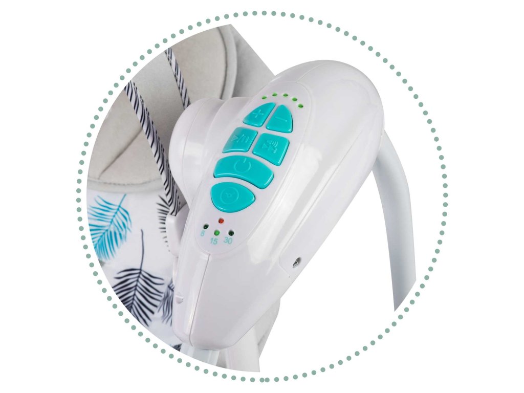 Njegovo upravljanje je preprosto! Hitro nastavite način guganja, izberite ustrezno melodijo, spremenite glasnost glasbe ali nastavite časovnik!