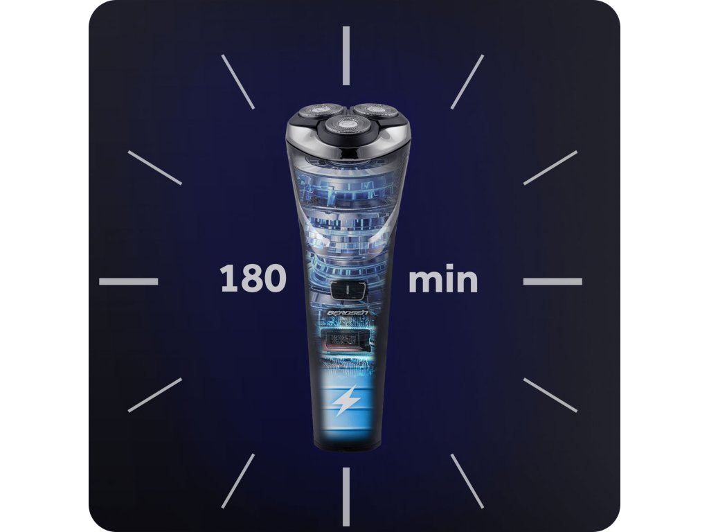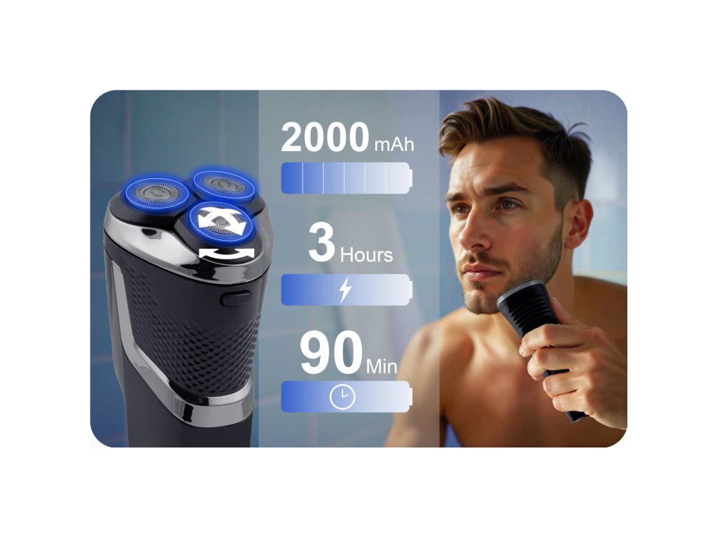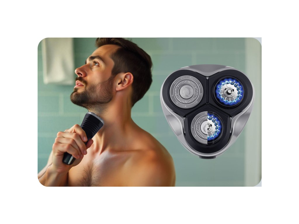 Rotacijska glava — zagotavlja udobno britje zahvaljujoč vrtljivim rezilom, ki se prilagajajo obliki obraza.