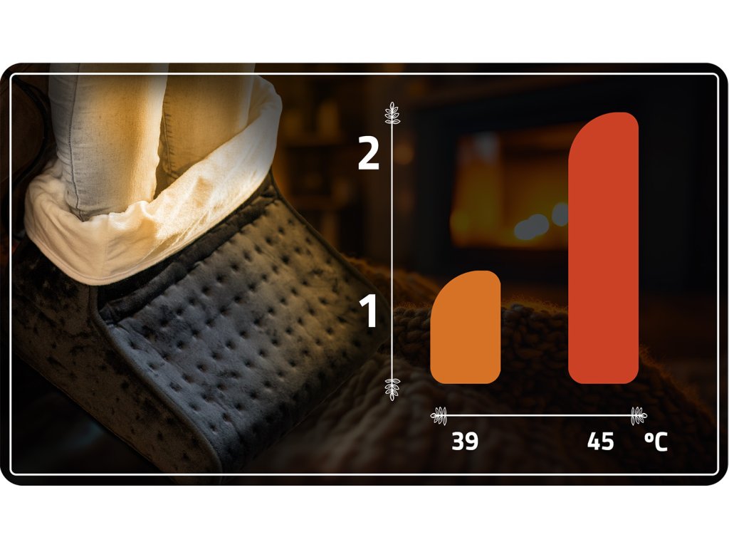 Zaradi treh ravni regulacije temperature grelnik zagotavlja hitro in udobno toploto, ki jo je mogoče prilagoditi individualnim potrebam. Kombinacija ogrevanja in masaže poskrbi, da premrznjene noge takoj pridobijo udobje, zlasti po aktivnem dnevu.