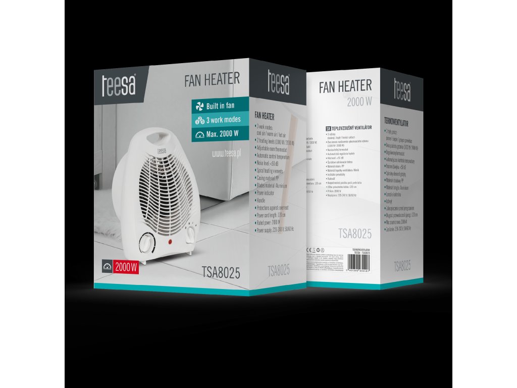 Termoventilator TSA0825 je naprava, ki bo zagotovo našla svoje mesto v vašem domu. Zahvaljujoč trem načinom delovanja – s hladnim, toplem ali vročim zrakom – bo uporaben tako v mrzlih kot vročih dneh. Če vas zebe, izkoristite možnosti tega termoventilatorja.
