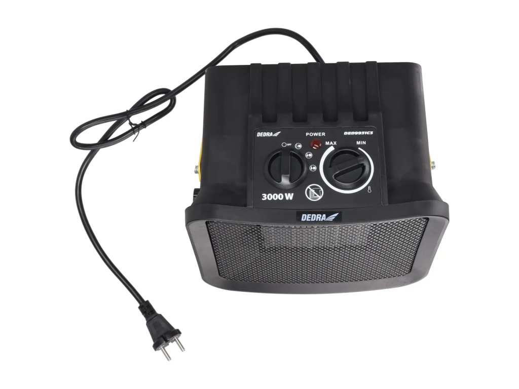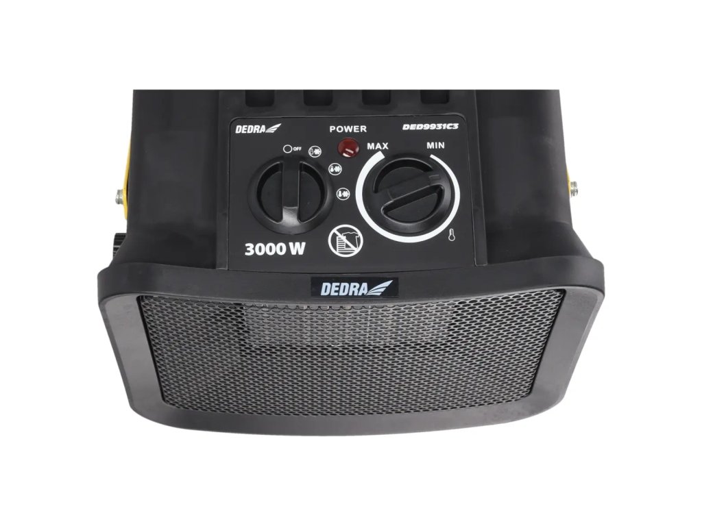 Električni grelec DED9931C 3 je naprava namenjena uporabi v z a p r t i h prostorih. Uporablja se za ogrevanje bivalnih in komercialnih prostorov, kot so kleti, garaže, delavnice itd. Naprava je namenjena uporabi kot pomožni vir toplote, ne kot glavni v i r toplote. Če je gumb za temperaturo nastavljen na najnižjo raven, naprave ni mogoče uporabljati kot električni grelec brez funkcije ogrevanja. Keramični grelni element (PTC) zagotavlja, da je toplota občutena skoraj takoj po vklopu naprave. Udoben ročaj za prenašanje.Ta izdelek je primeren samo za občasno uporabo ali za uporabo v dobro izoliranih prostorih.