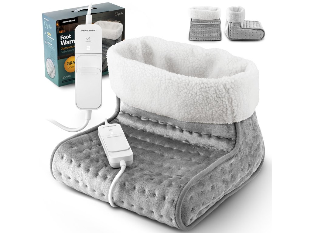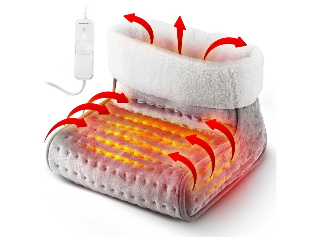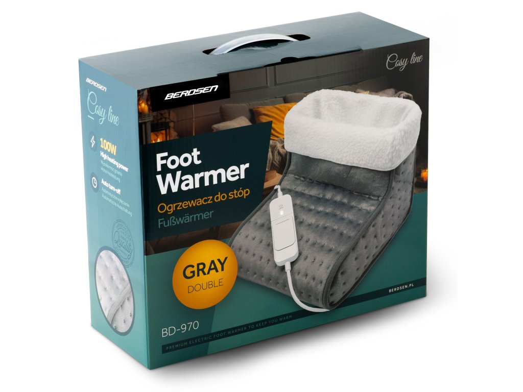 Grelec je zasnovan z mislijo na prilagoditev različnim velikostim nog, kar zagotavlja udobje pri uporabi. Mehka, prijetna na dotik obloga nudi toploto in sprostitev, idealno za hladne dni.