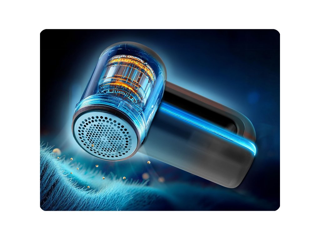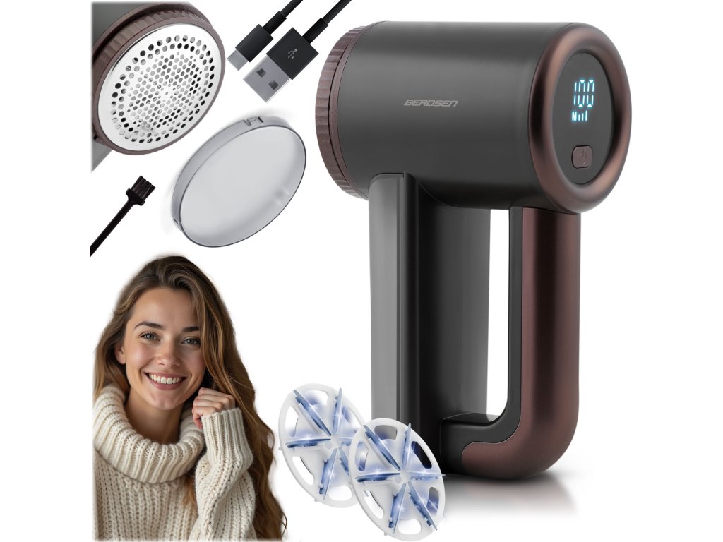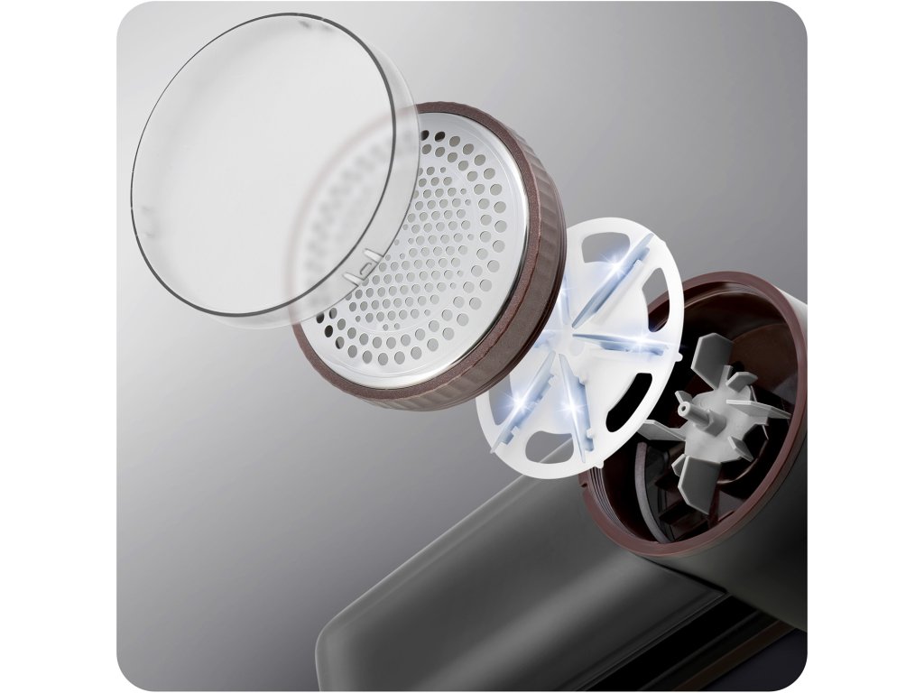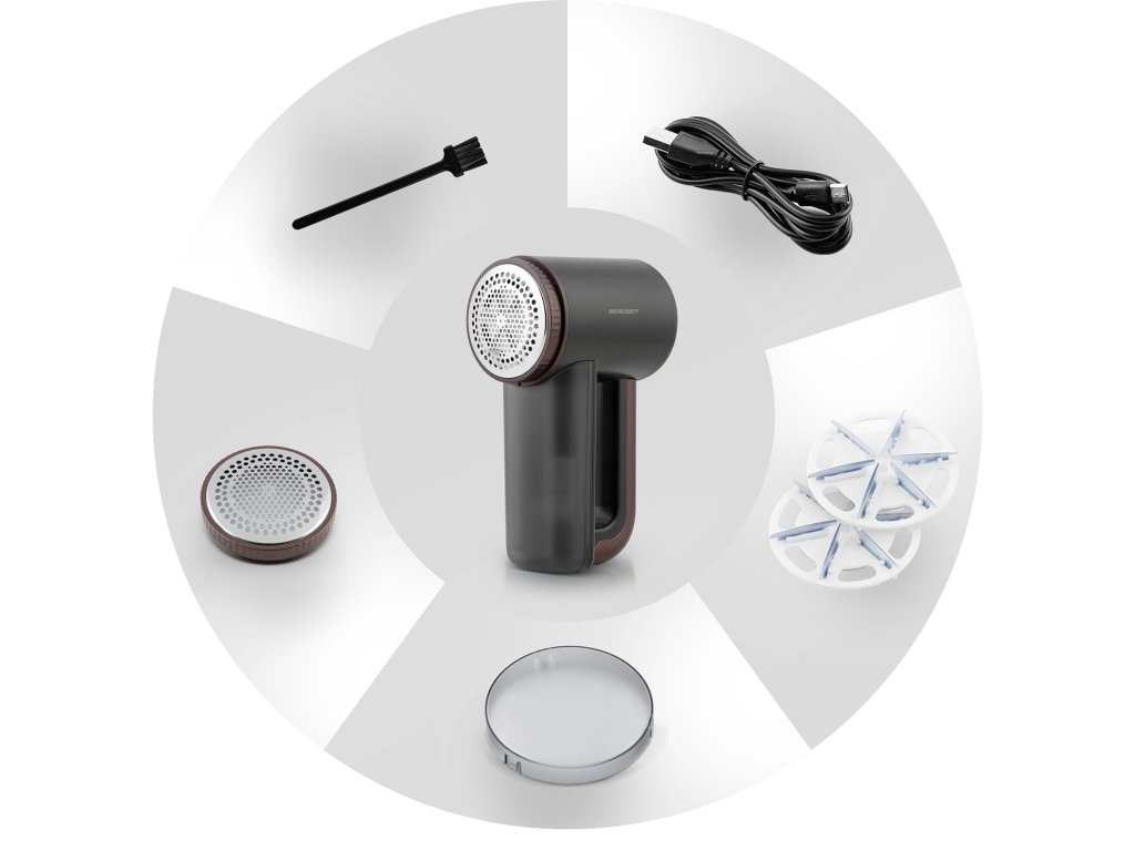 - 6 rezil iz nerjavečega jekla zagotavlja temeljito in učinkovito odstranjevanje kepic, kosmov, štrlečih niti in kepic s tkanin.