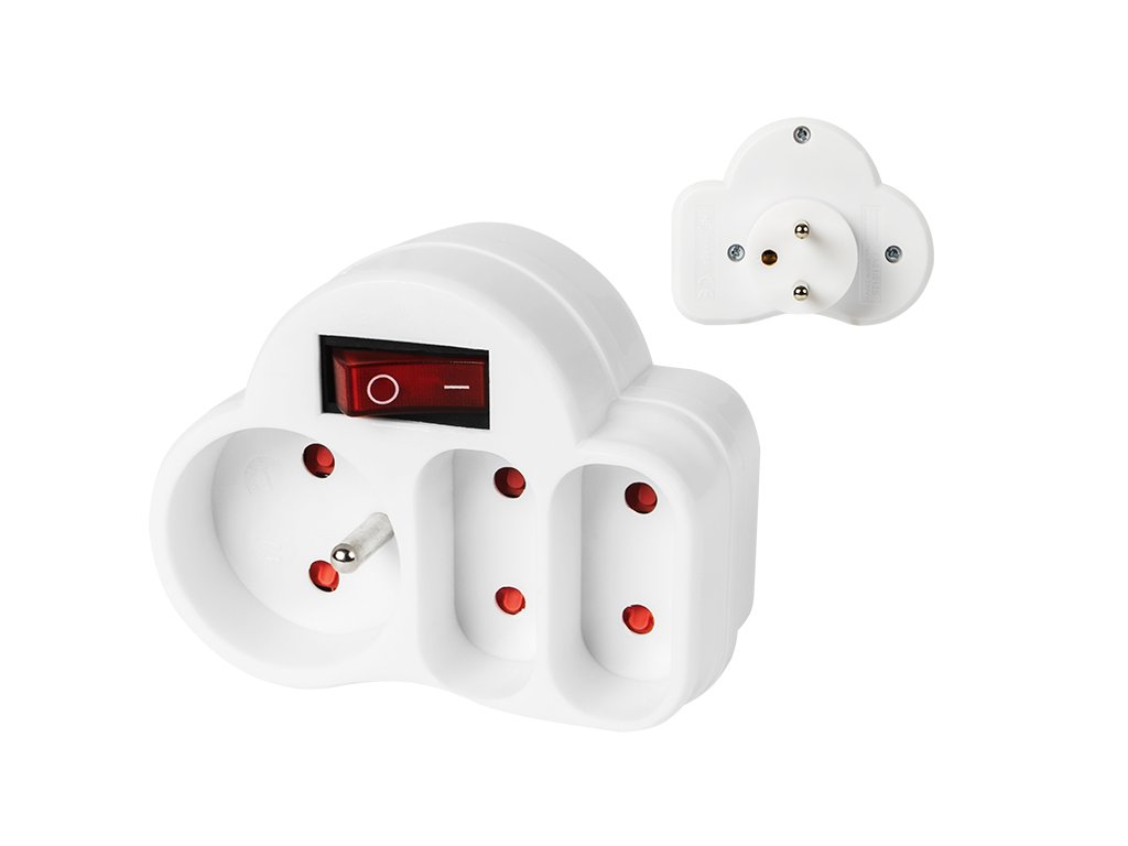 Razdelilnik R-12WS 3VTIČNICI z izklopnikomZelo funkcionalen razdelilnik z dvema ploščatima vtičnicama, eno vtičnico z ozemljitvijo in stikalom - izjemno uporaben v primeru majhnega števila dostopnih omrežnih vtičnic. Vtičnice omogočajo priklop dveh naprav s ploščatim vtičem in ene naprave z vtičem z ozemljitvijo. Izdelek je izdelan iz visokokakovostnih materialov, ki zagotavljajo dolgotrajnost in varnost. Specifikacija:
