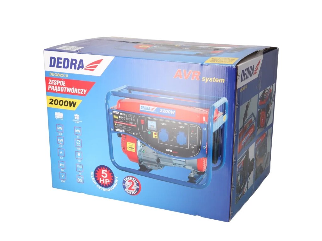 Generator DEGB2510 z nazivno močjo 2000 W služi kot nujno napajanje v primeru izpada električnega omrežja.