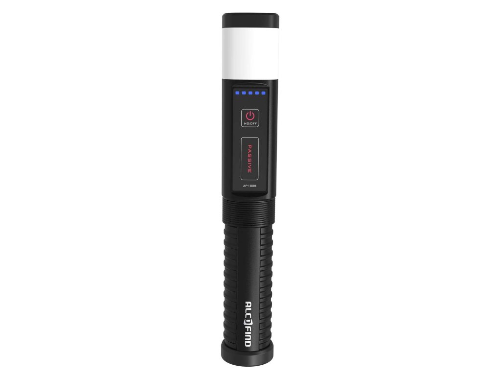 Alkotester brez ustnikov AF-100S svojo izvrstno delovanje dolguje visokokakovostnemu elektrohemijskemu senzorju. Rezultat meritve je prikazan s pomočjo diod. Vsaka izmed njih predstavlja določen prag dovoljene vsebnosti alkohola v izdihanem zraku. Na primer: 1 modra dioda pomeni prag 0.10 ‰, 3 svetleče modre diode – 0.30 ‰. Naprava omogoča nastavitev alarma na eni od 5 nivojev od 0,1 do 0,5 ‰. Alkotester deluje v dveh načinih: aktivnem in pasivnem. Aktivni način zahteva izdihavanje zraka s strani kontrolirane osebe. Pasivni način samodejno vzame vzorec, kar omogoča preverjanje prisotnosti alkoholnih hlapov v pijači.