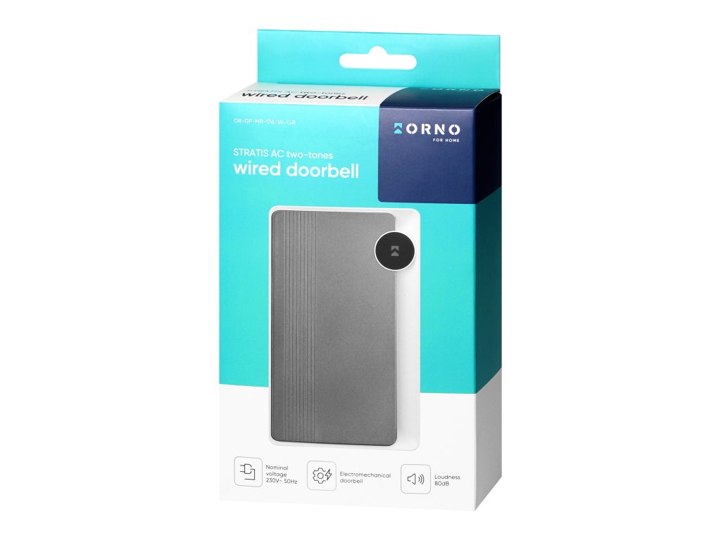 Žični dvobarvni zvonec je enostaven za namestitev in udoben za uporabo. Elektromehanski zvonec s funkcijo zaščite proti blokiranju - zaščiten pred poškodbami zaradi prisilnega neprekinjenega delovanja. Naprava je namenjena za uporabo v zaprtih prostorih z namestitvijo zvonca s 230 V AC, npr. v hiši, stanovanju, trgovini itd.Zvonec oddaja dva klasična tona ding-dong z glasnostjo 80 dB. Ohišje naprave je izdelano iz plastike.